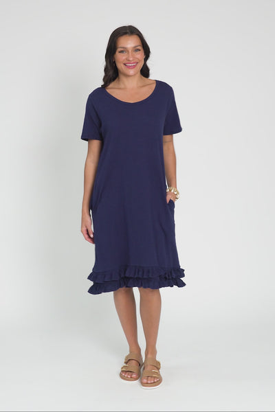 Aaliyah Navy Cotton Frill Dress