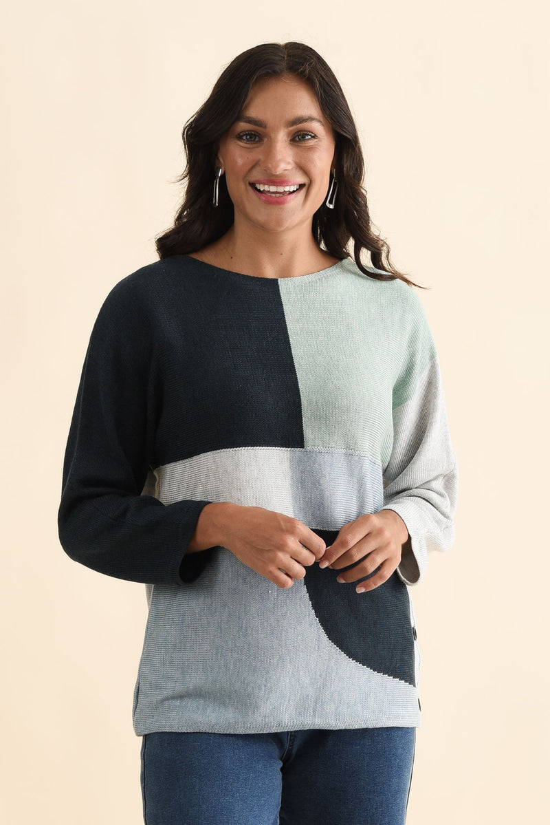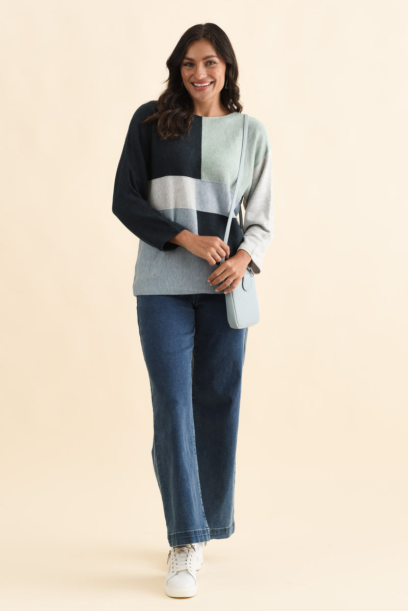Acton Blue Splice Wool Blend Sweater