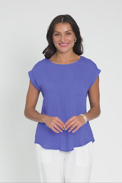 AIDEN COBALT LINEN BLEND POCKET TOP