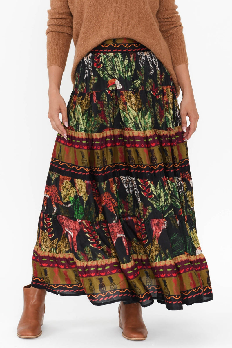 ALIDA NAVY SAFARI TIERED SKIRT