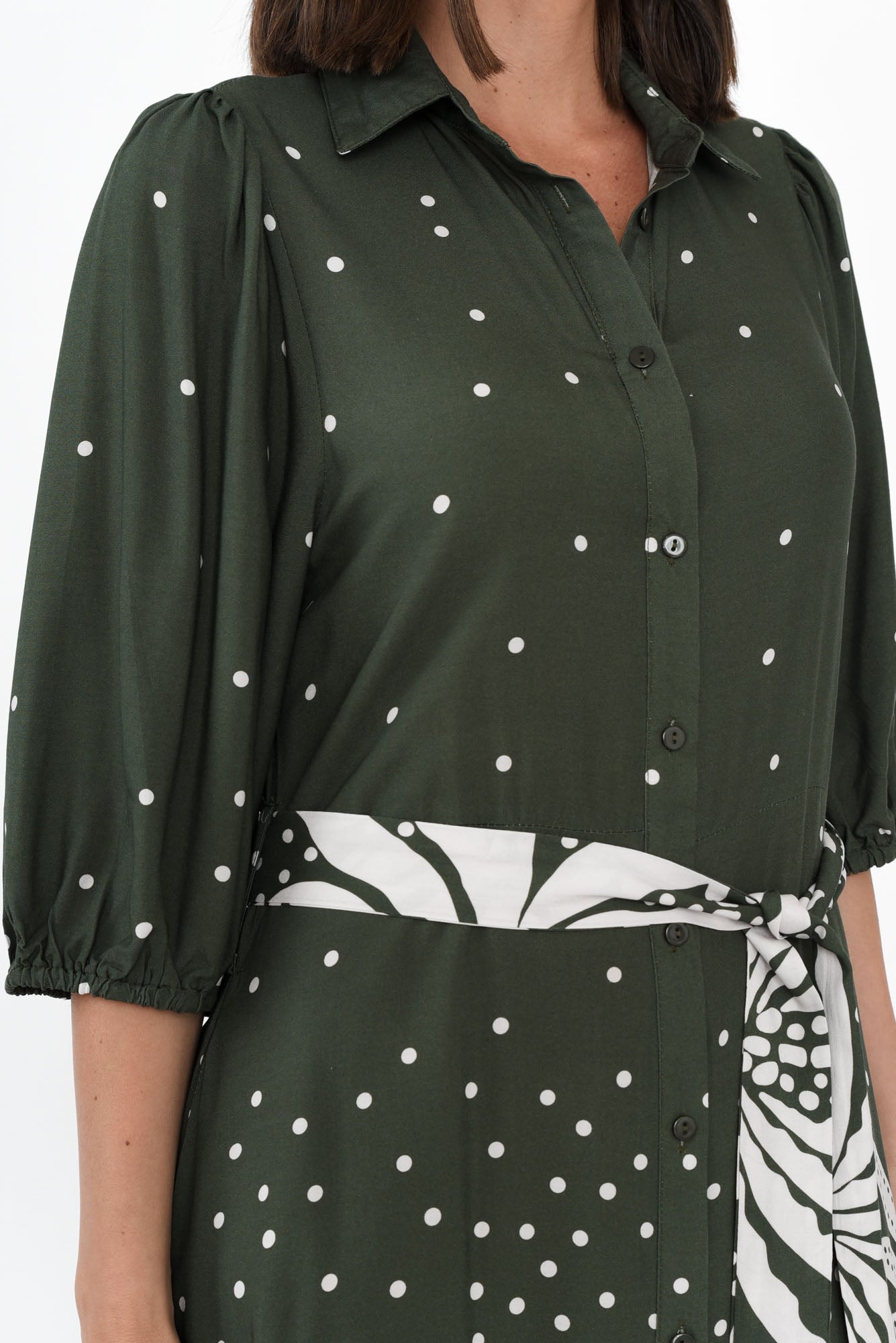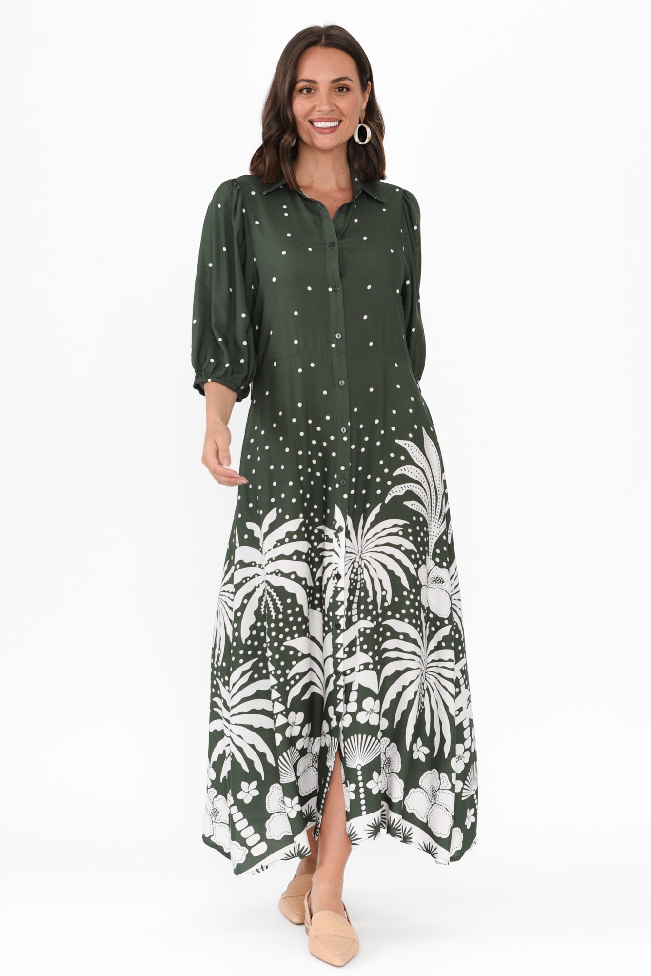 Alivia Khaki Tropical Shirt Dress