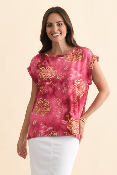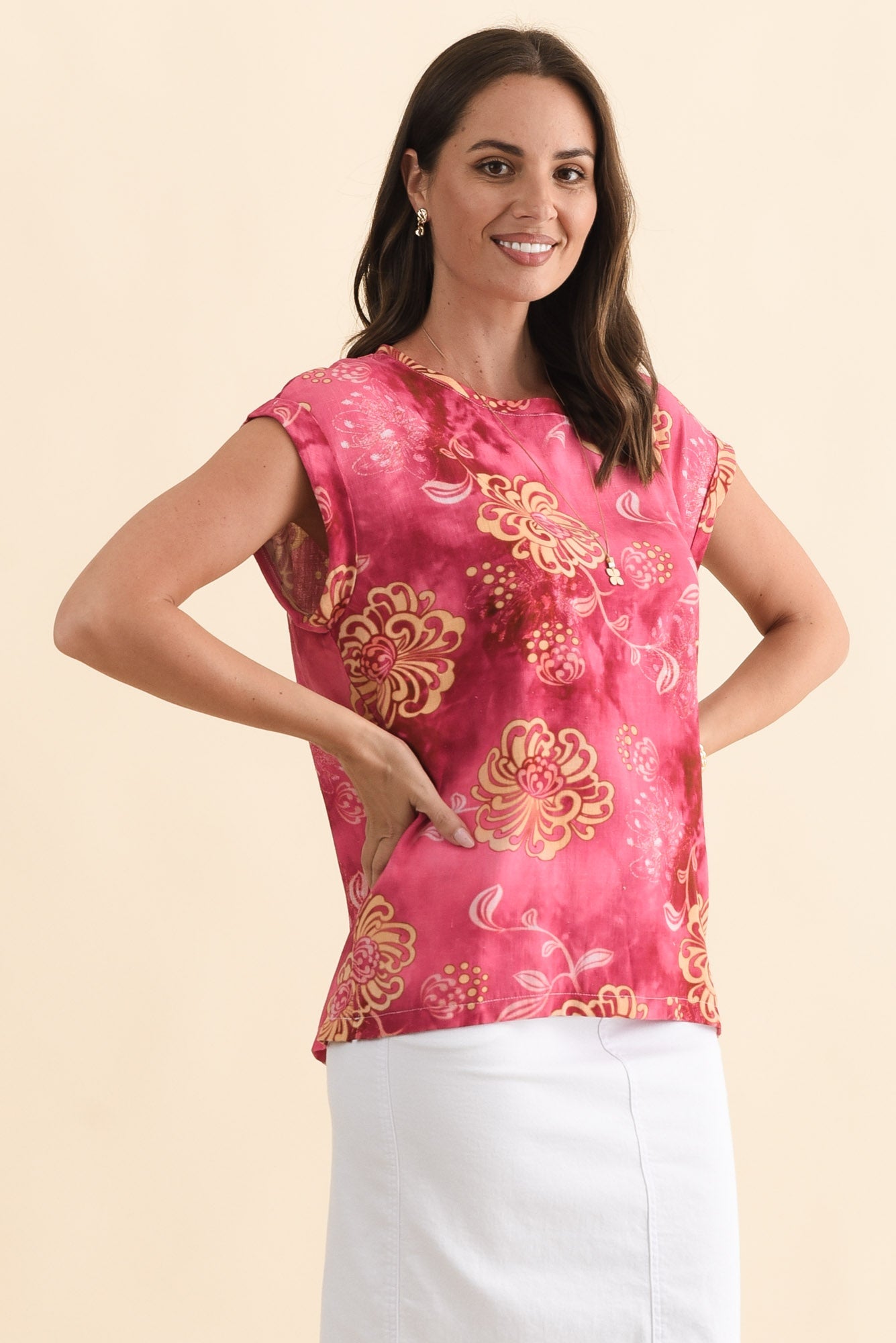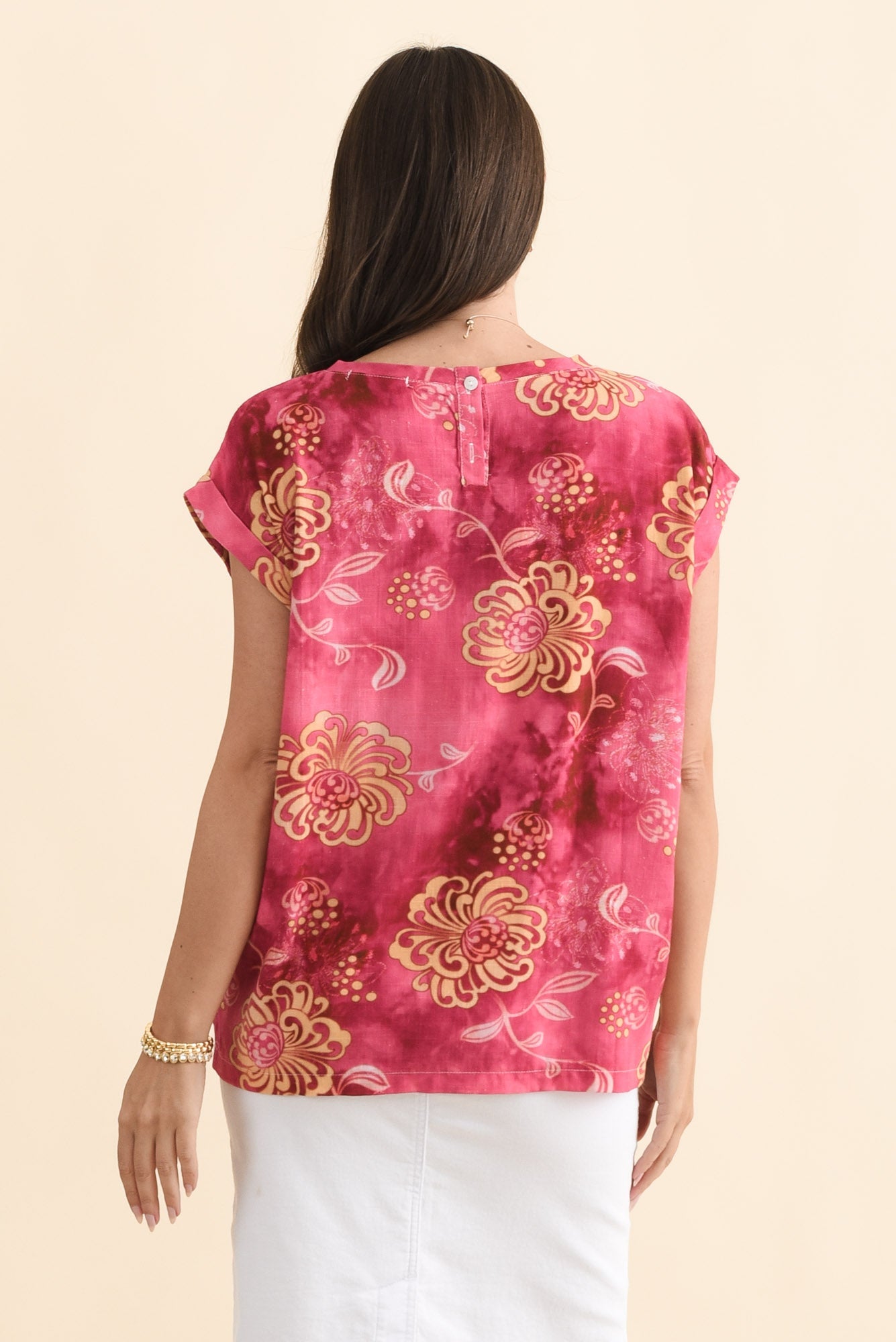Alta Pink Flower Linen Cotton Top