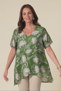 Alvina Green Floral Layered Tunic Top