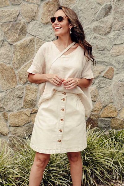 Amanda Ivory Stretch Denim Skirt