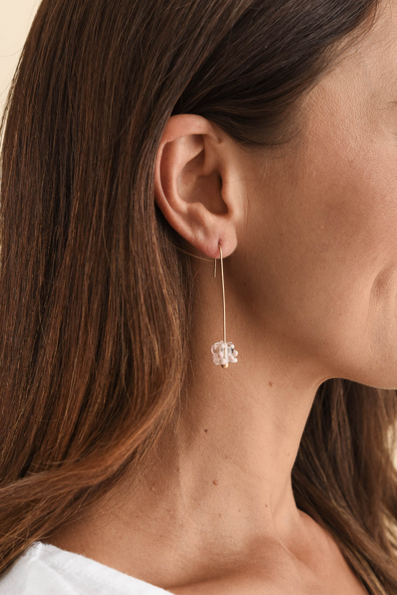 Anka Pink Dot Glass Hook Earrings