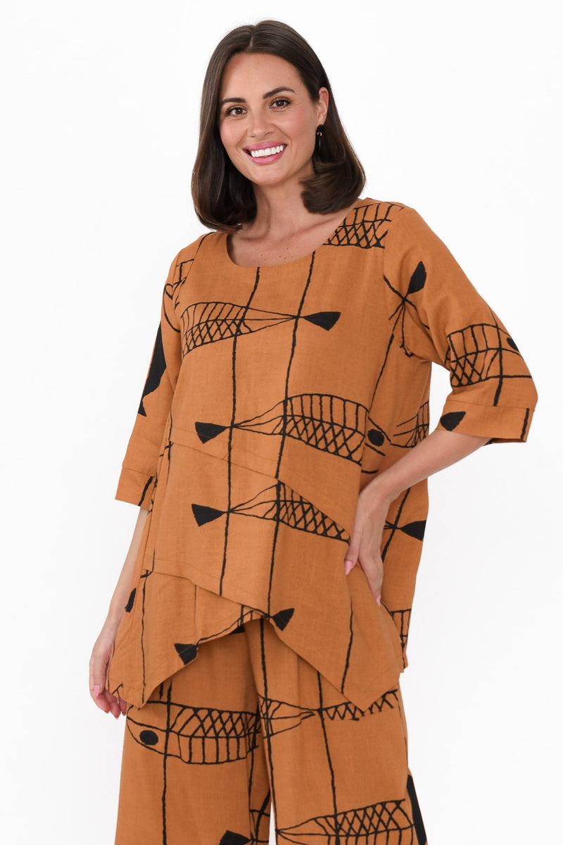 Anya Rust Sea Linen Cotton Top
