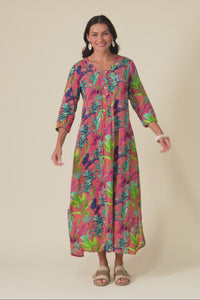 Apia Pink Tropical Cotton Maxi Dress