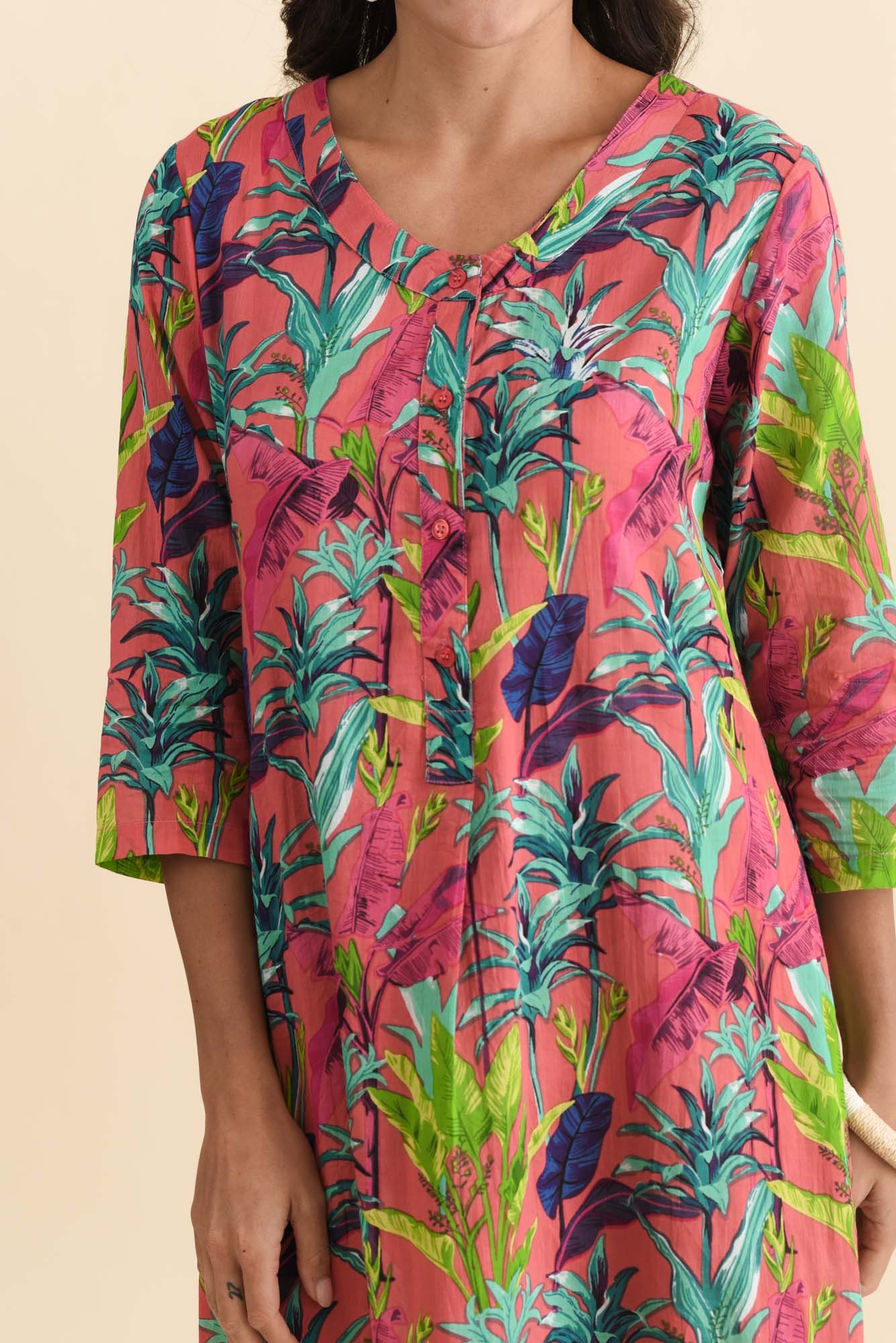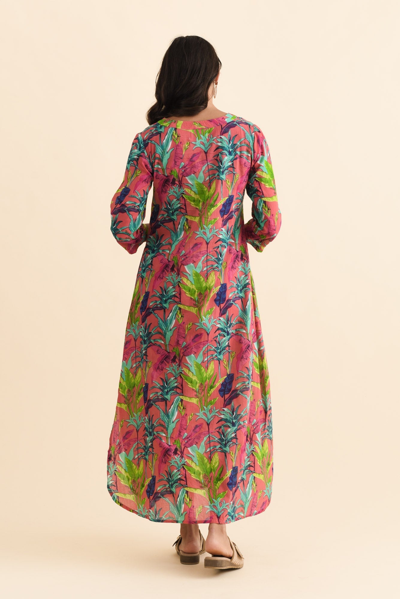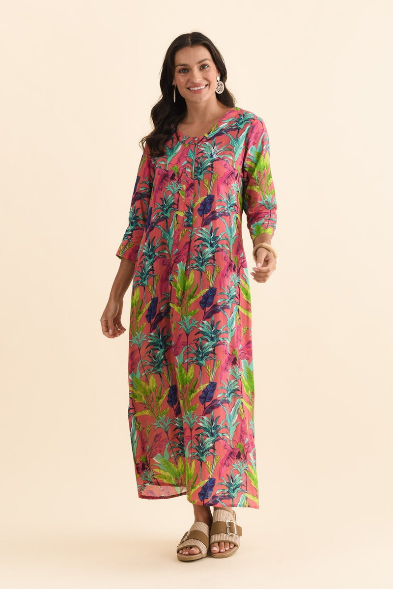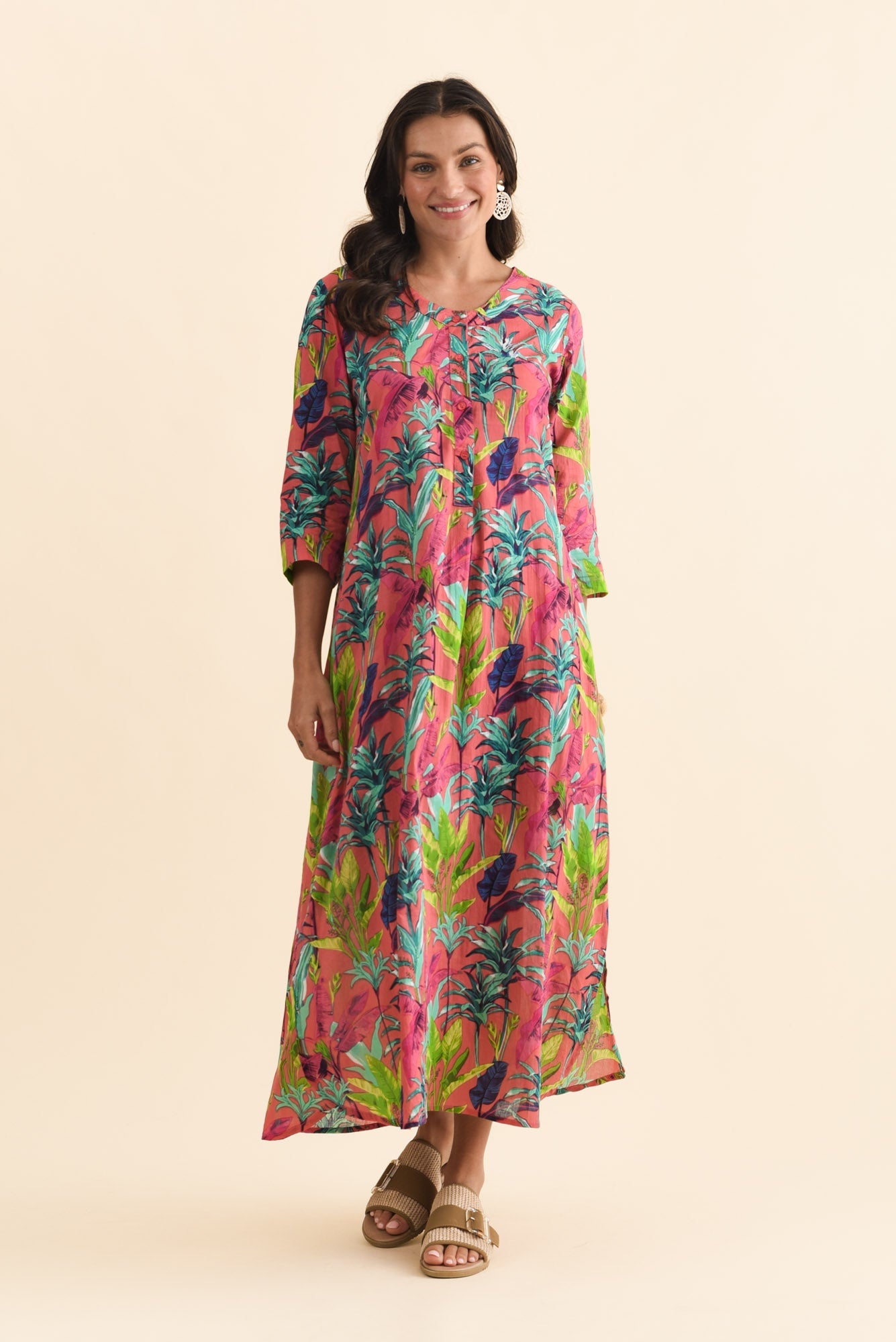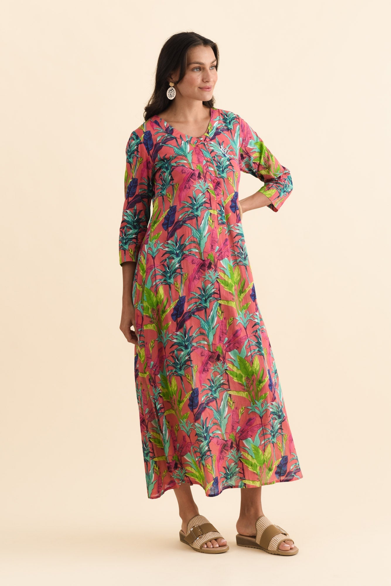 APIA PINK TROPICAL COTTON MAXI DRESS