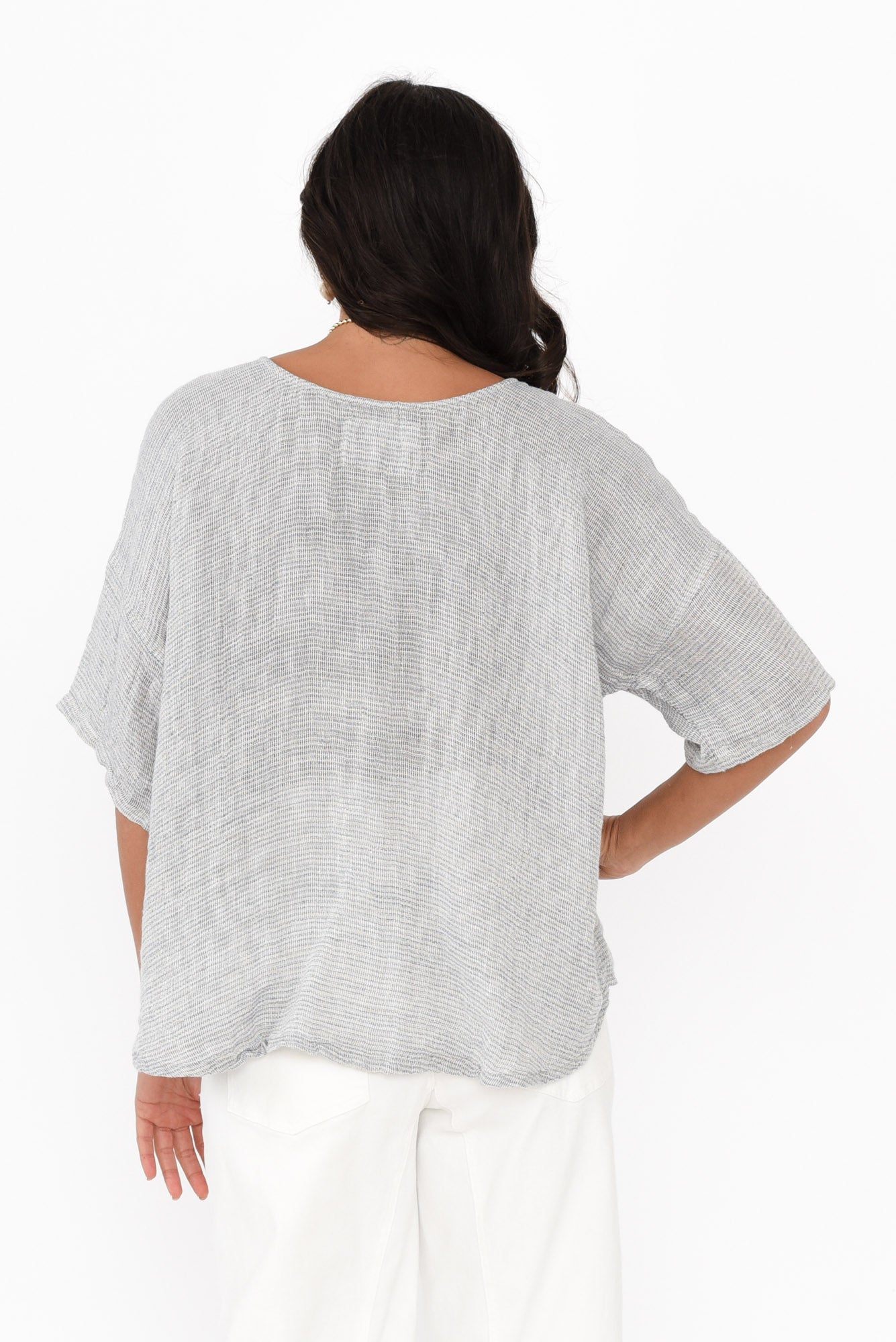 Barbara Light Blue Stripe Linen Top