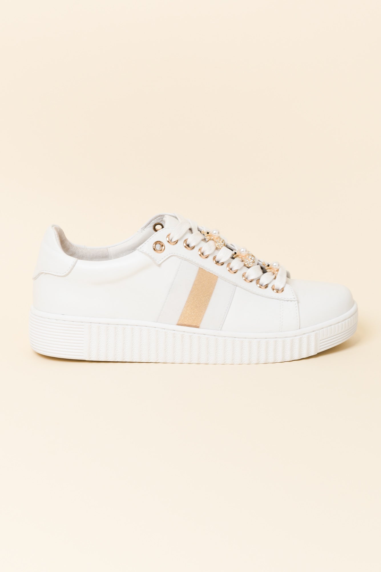 BEE WHITE STRIPE LEATHER SNEAKER