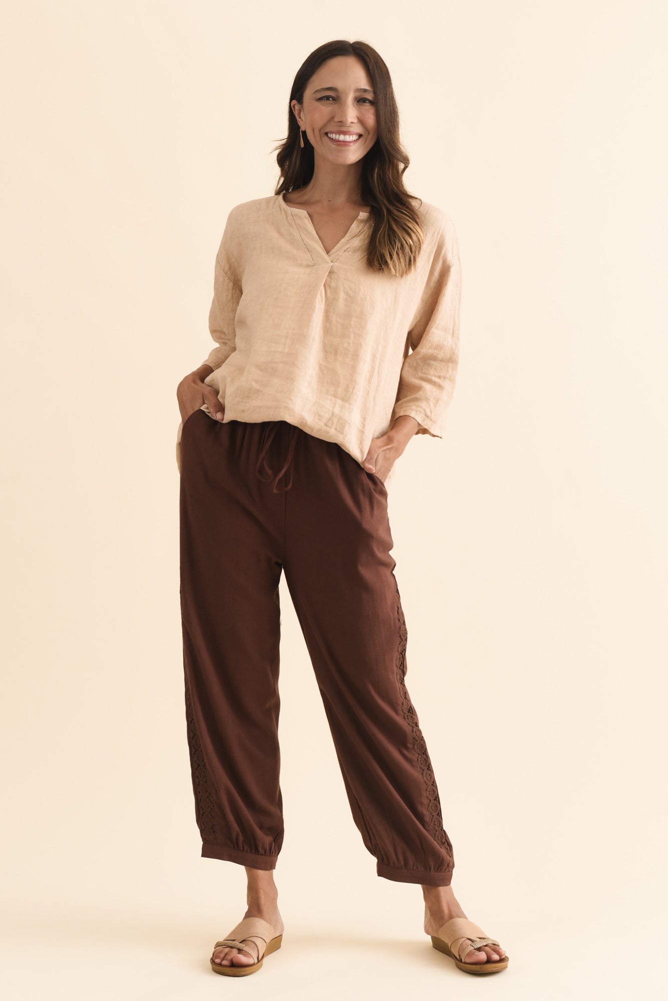 BERETTA CHOCOLATE LACE LINEN BLEND PANTS