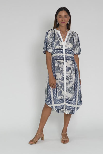 BIJOU INK FLORAL LINEN BLEND DRESS