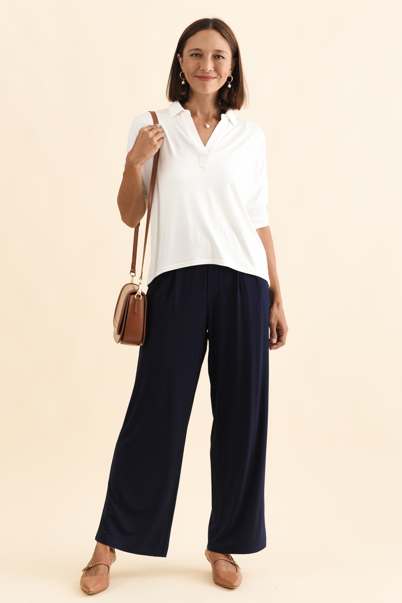 Billie Navy Bamboo Wide Leg Pants