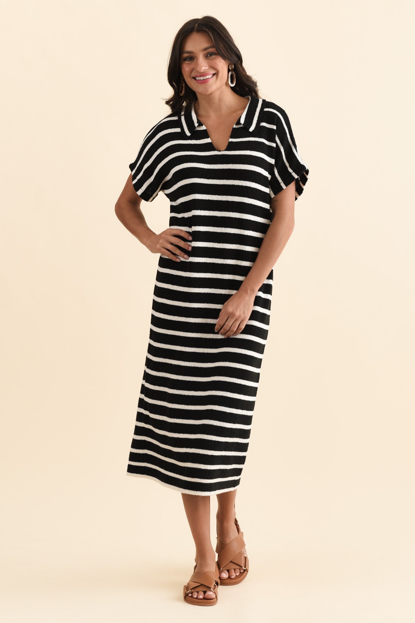 Bradford Black Stripe Knit Polo Dress