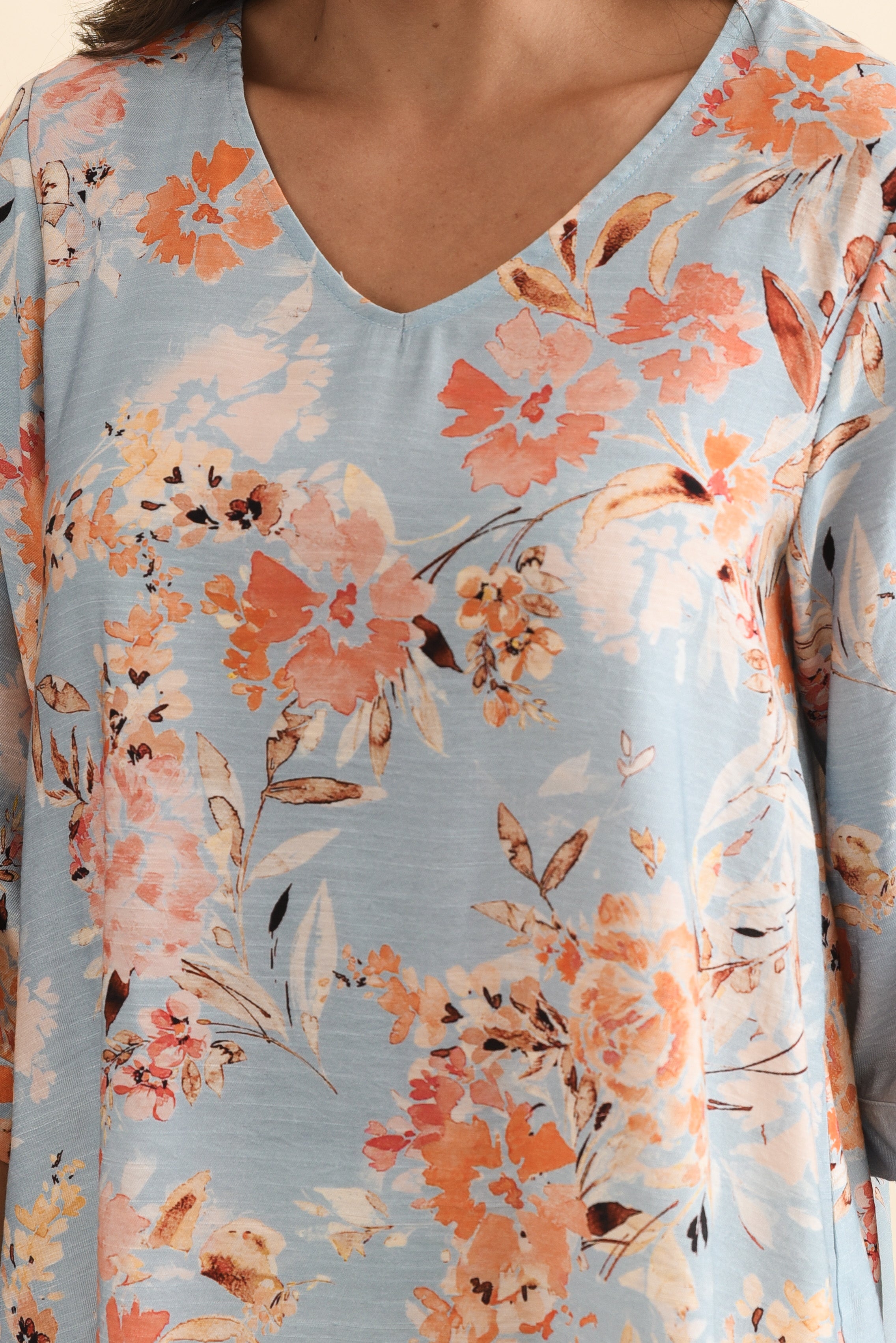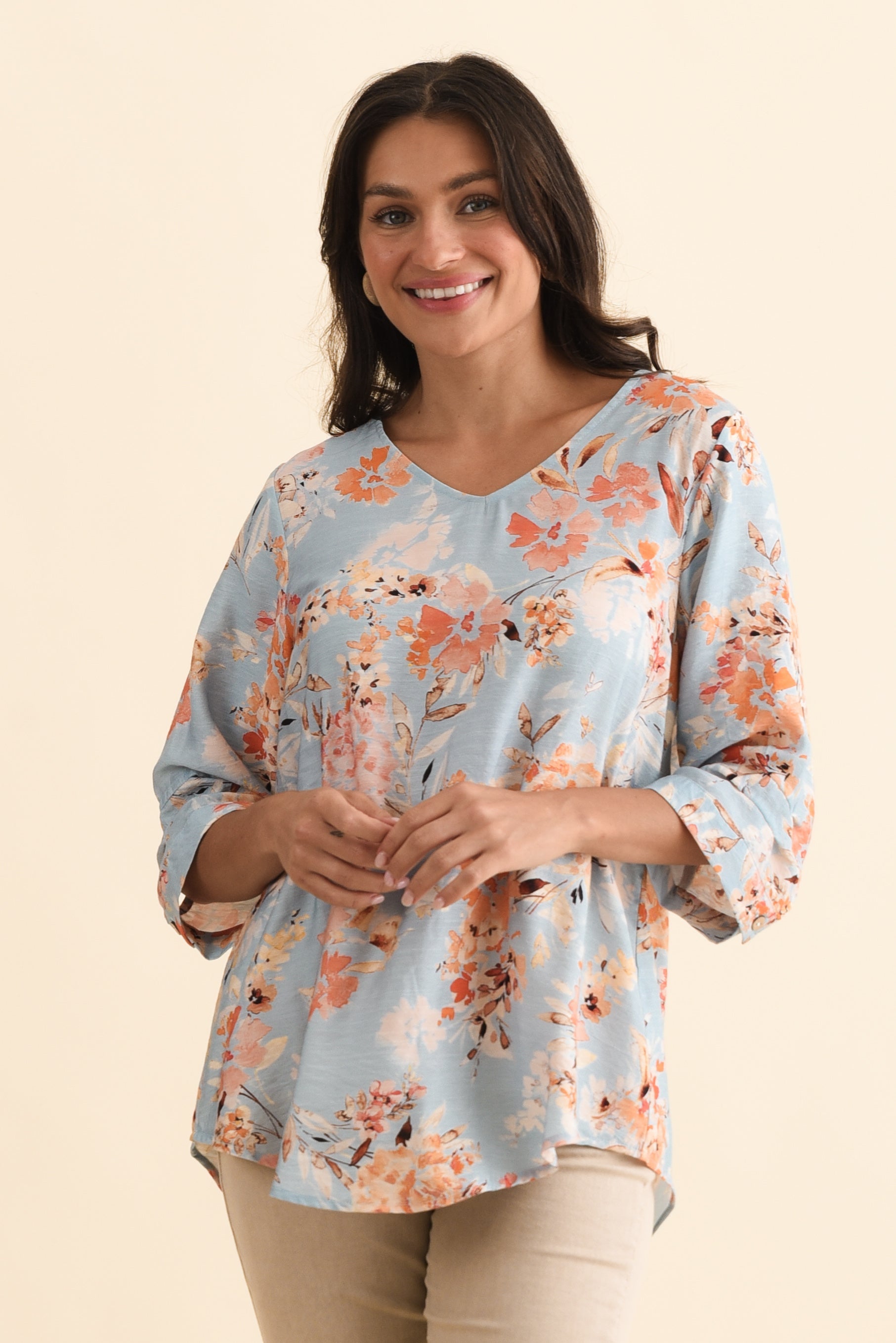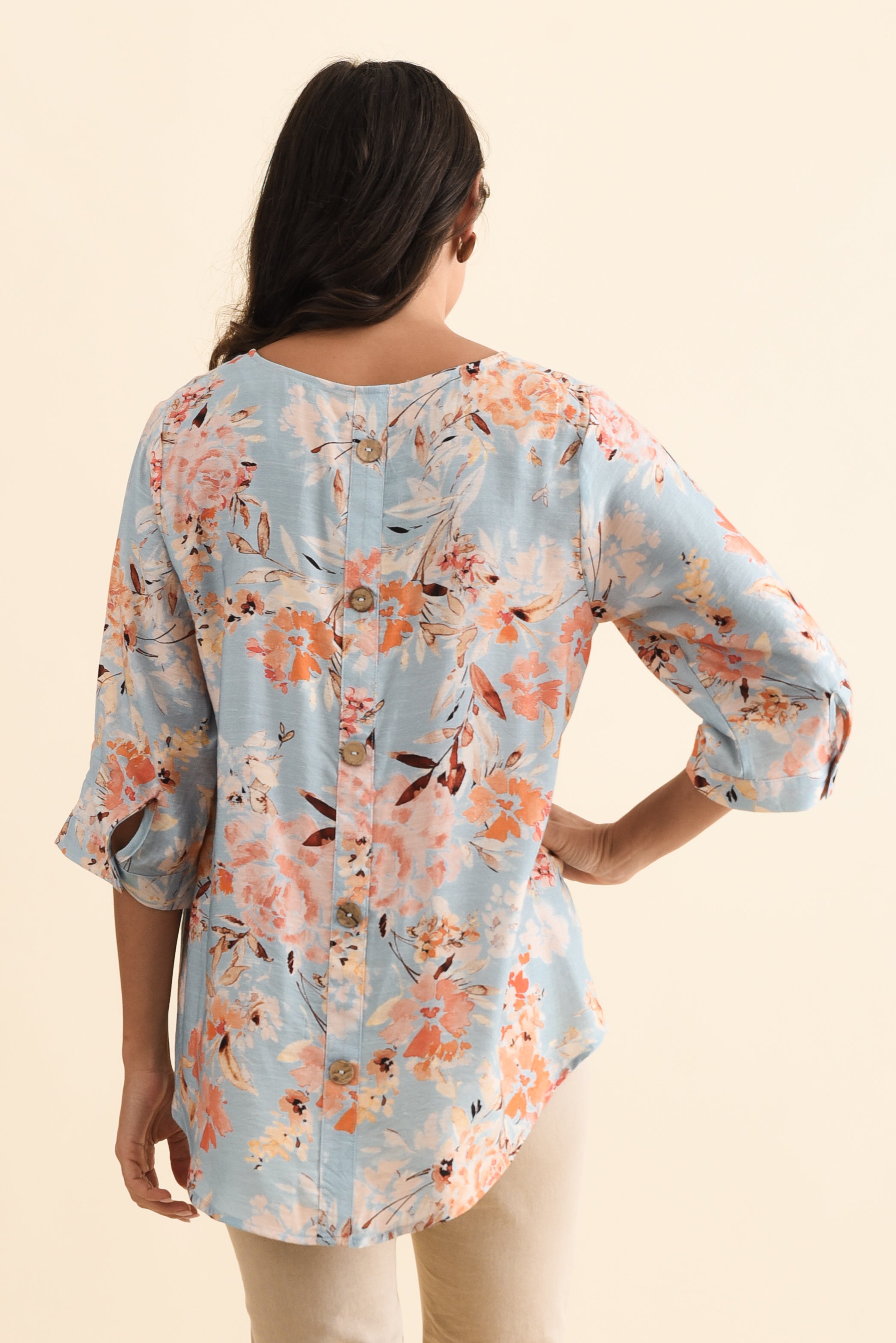 Breanne Blue Garden Button Top
