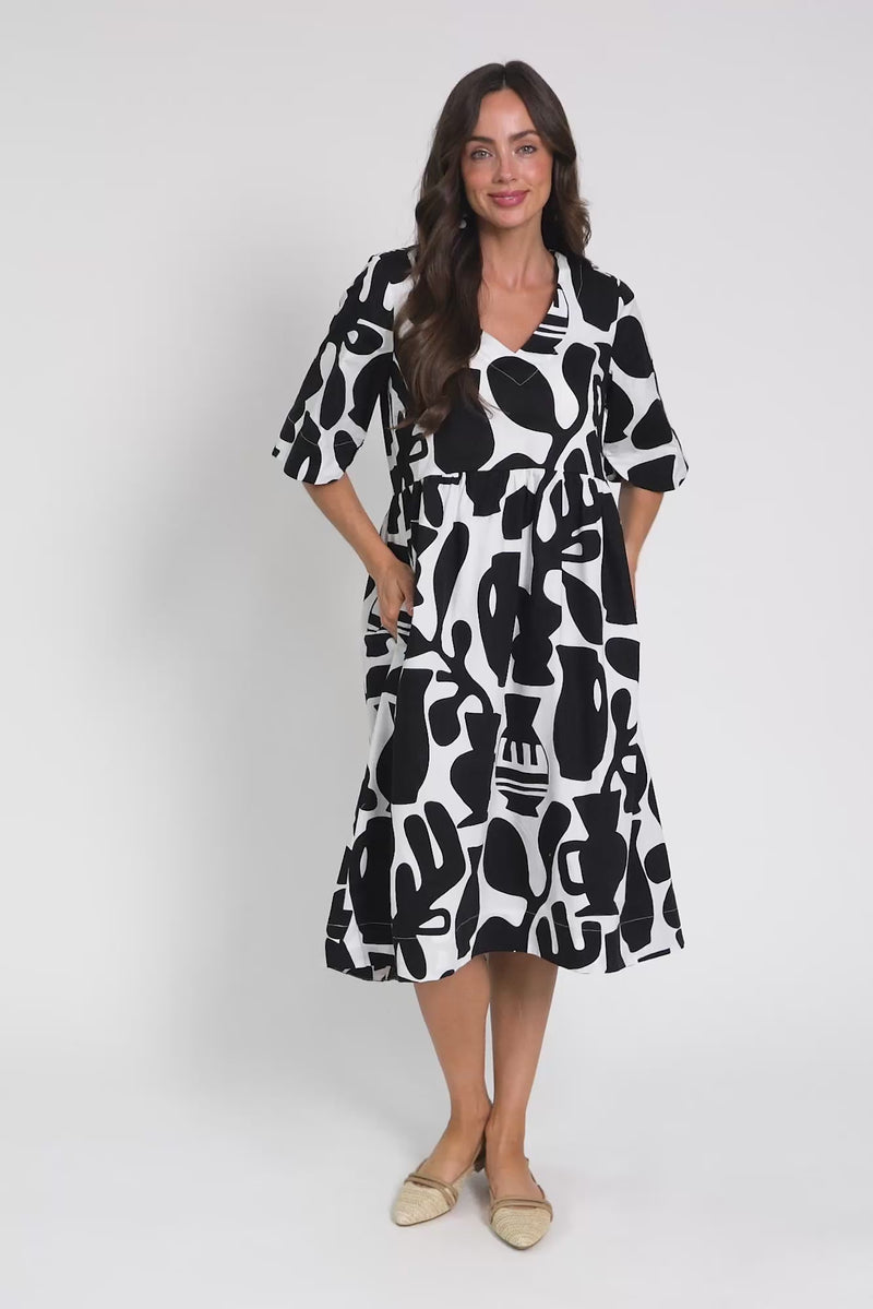 BRIGHTSIDE BLACK ABSTRACT COTTON DRESS