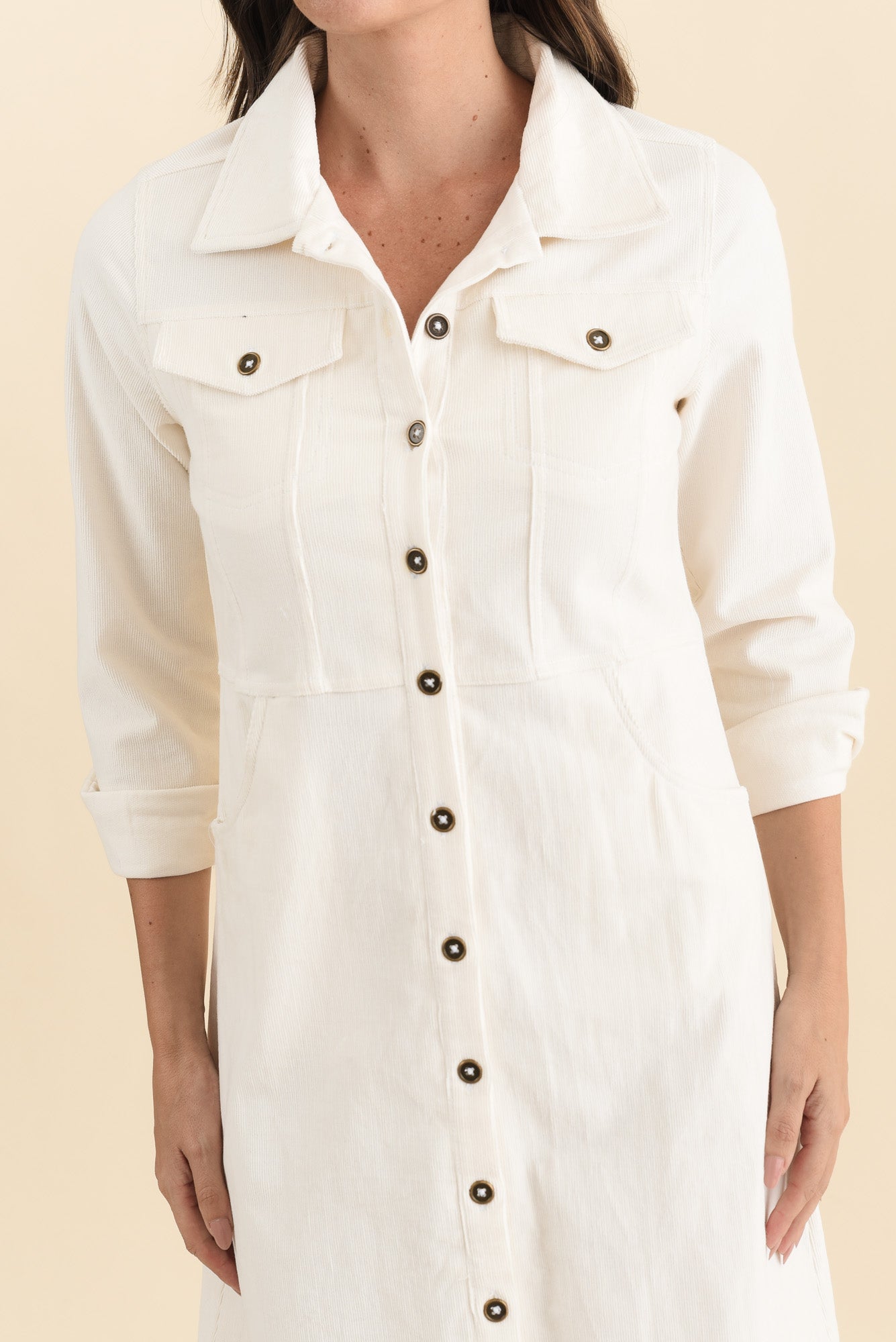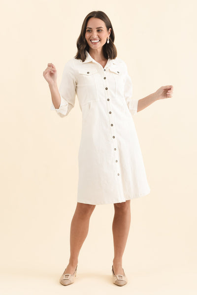 Bronwyn White Corduroy Button Dress