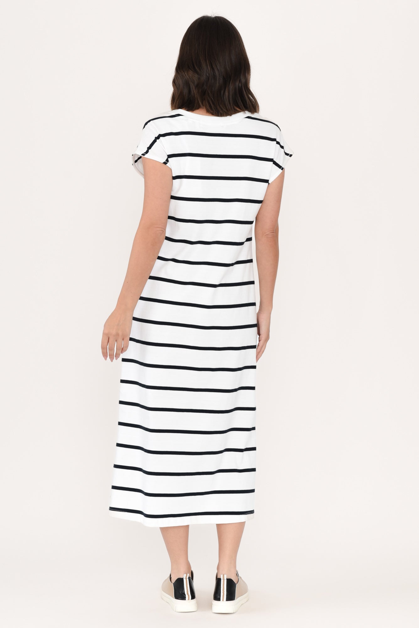 CASEY WHITE STRIPE COTTON TIE DRESS