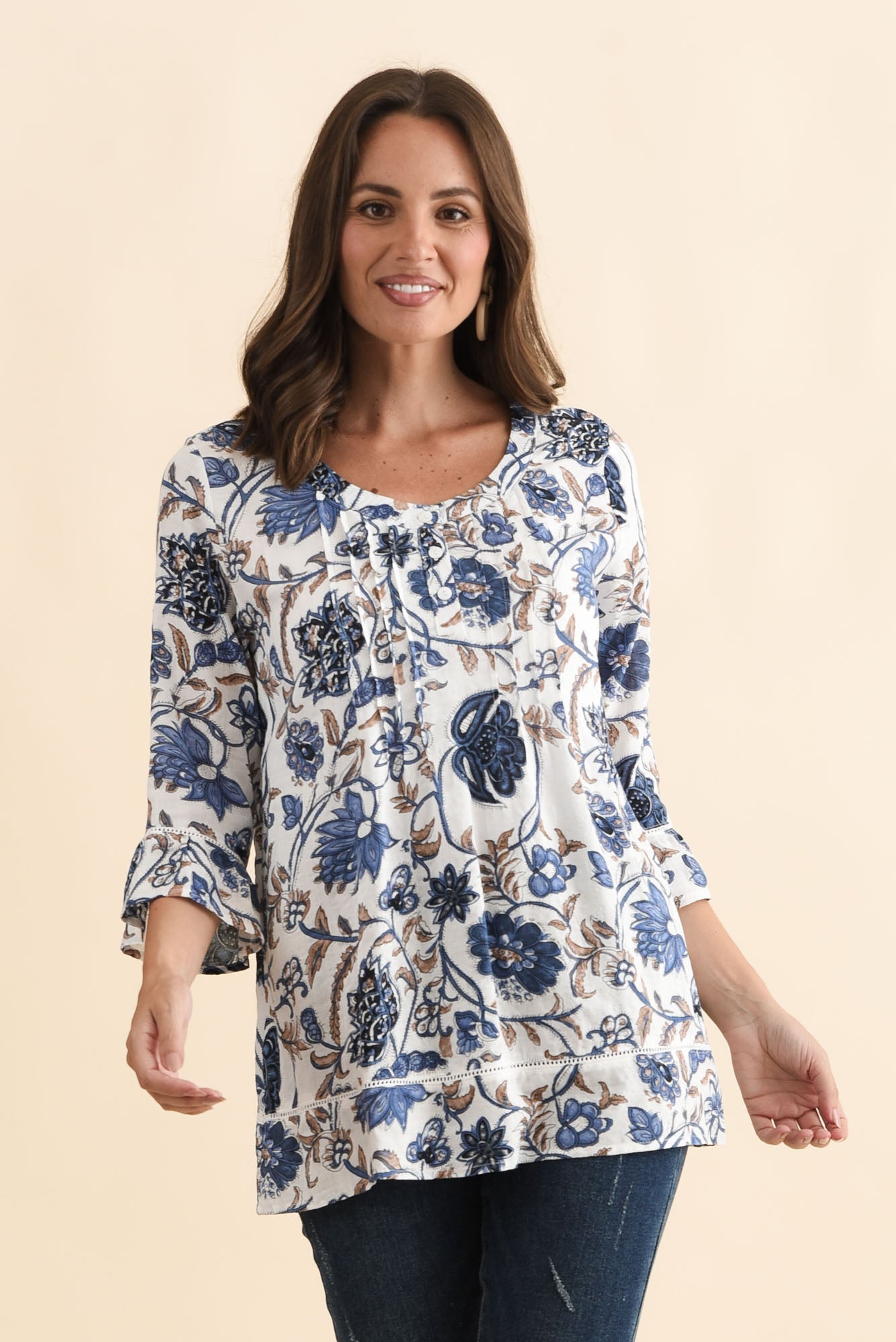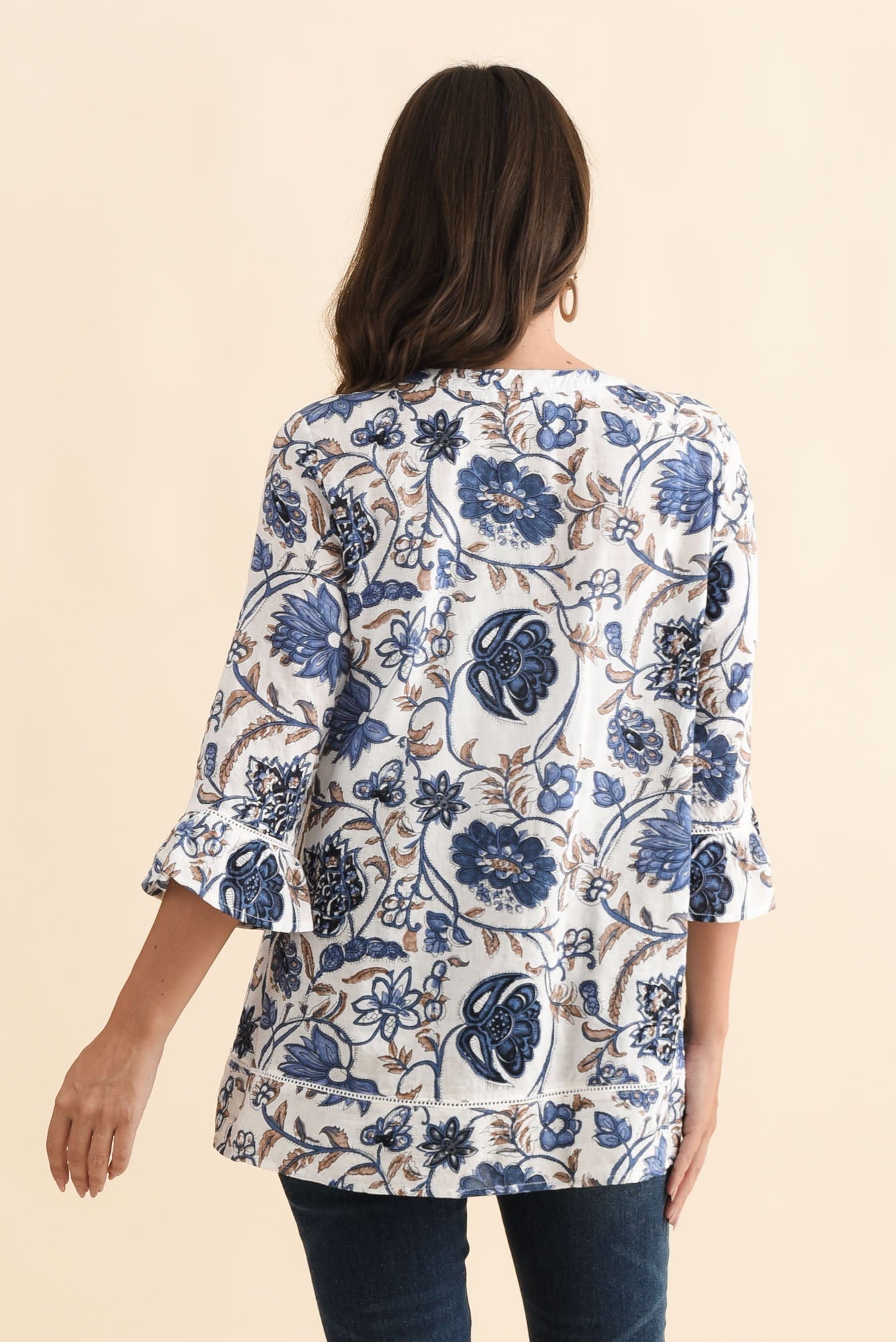 Cassidy Blue Botanical Cotton Sleeved Top