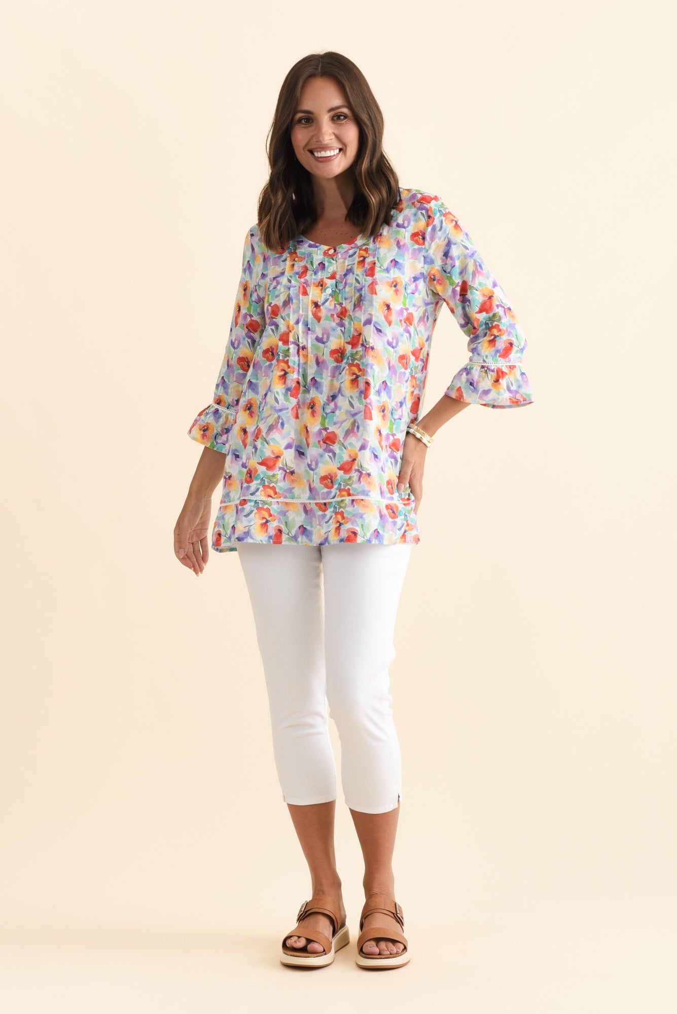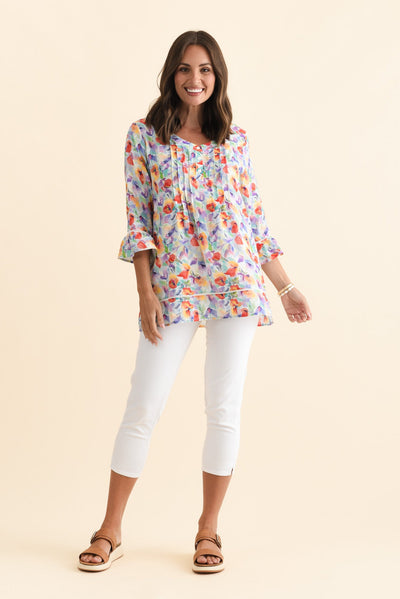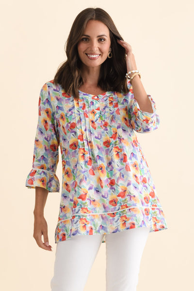 Cassidy Orange Flower Cotton Sleeved Top