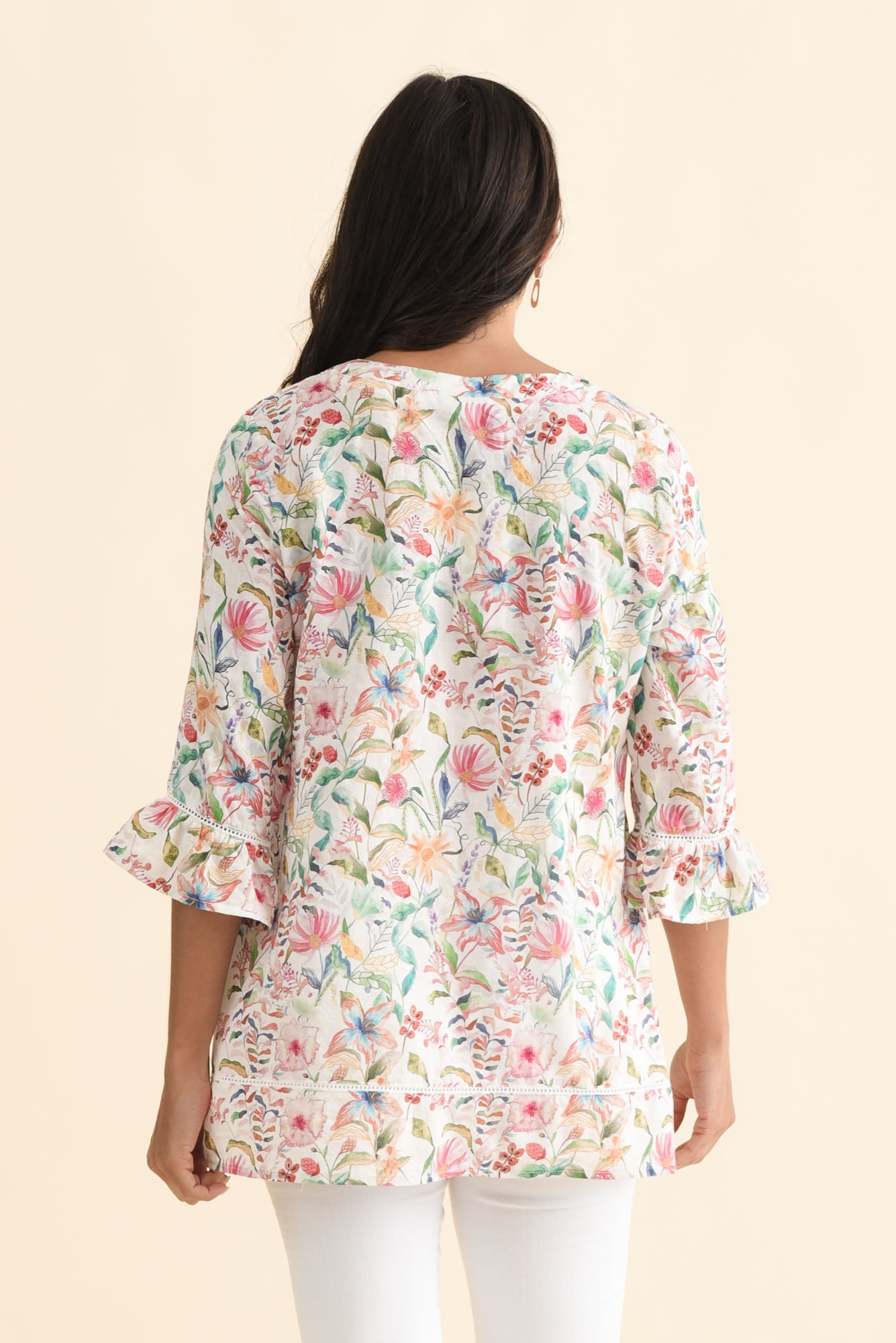 CASSIDY PINK FLORAL COTTON SLEEVED TOP