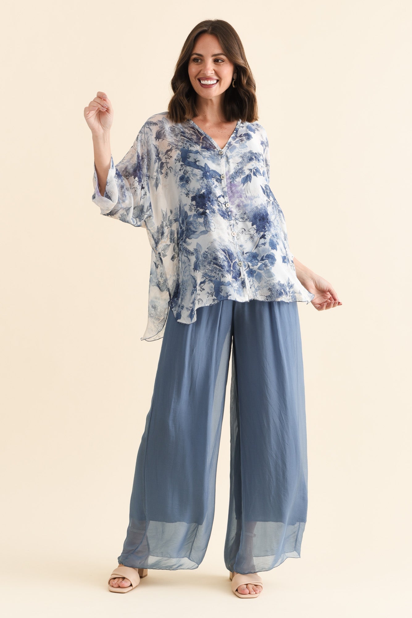 CATHLEEN BLUE FLORAL SILK BLOUSE