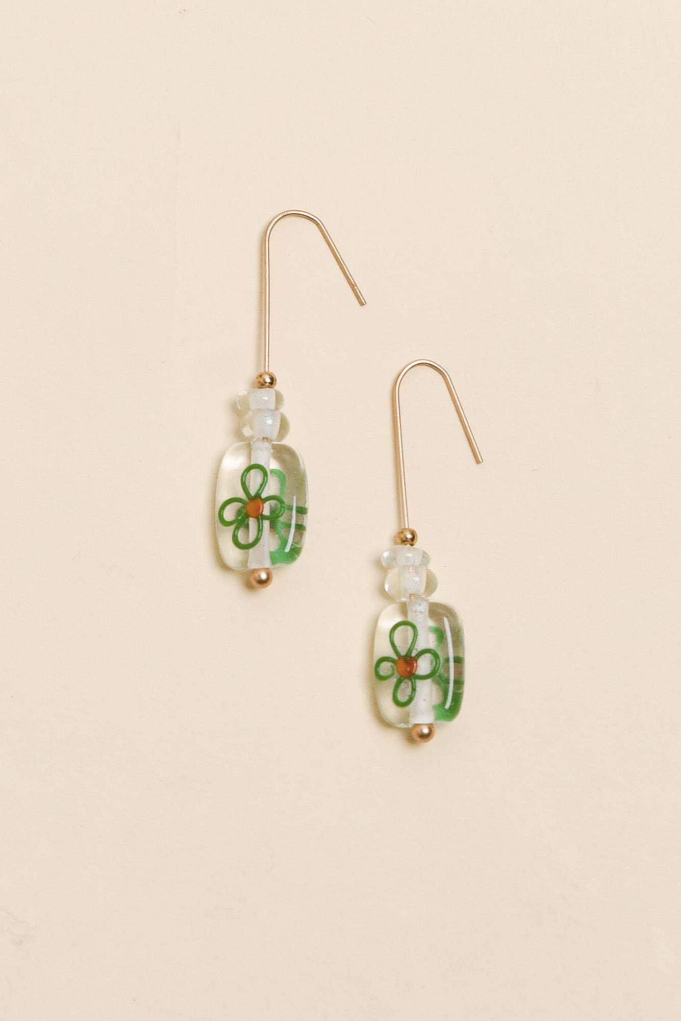 Celia Green Flower Glass Hook Earrings