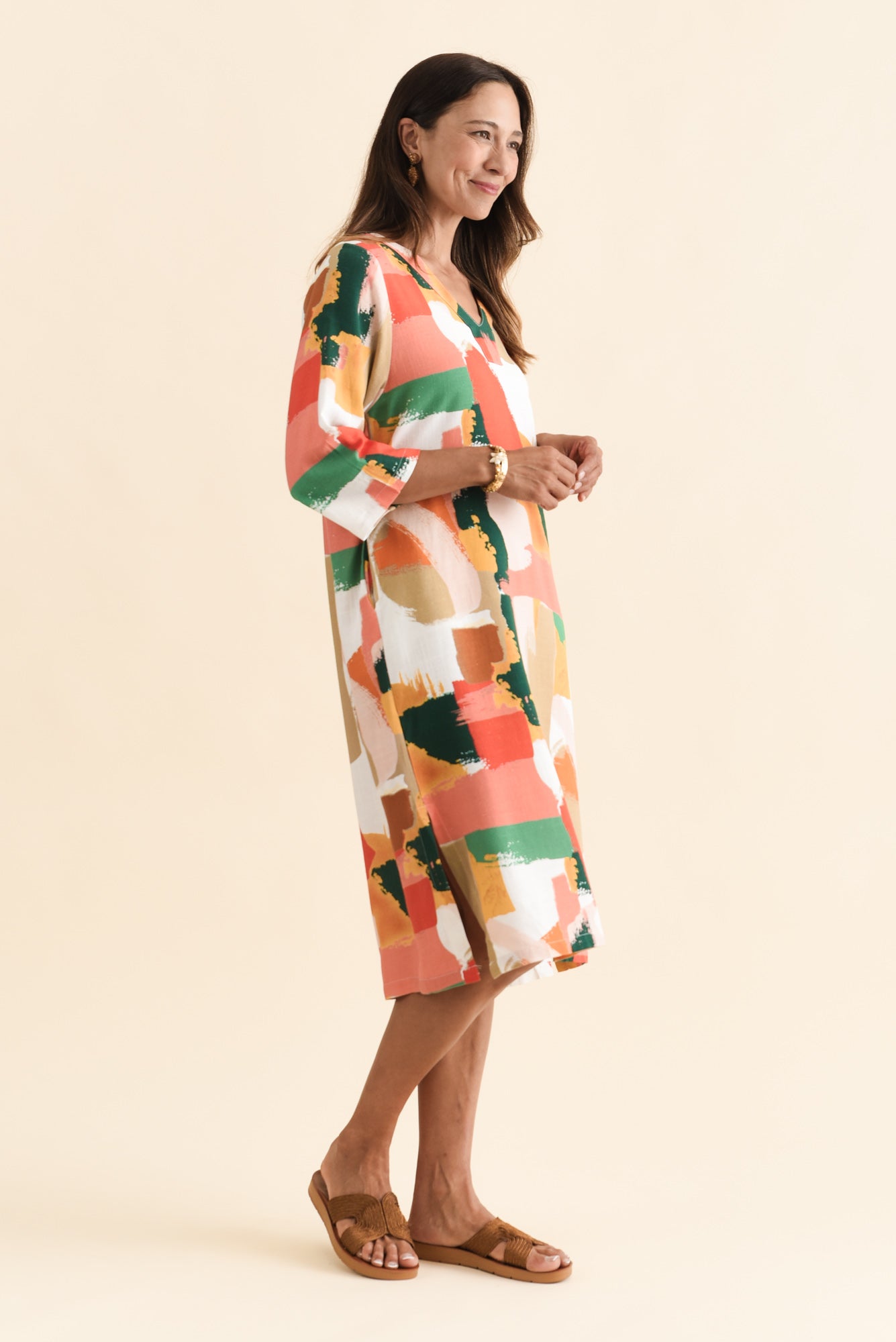 CELINE PINK ABSTRACT LINEN COTTON DRESS