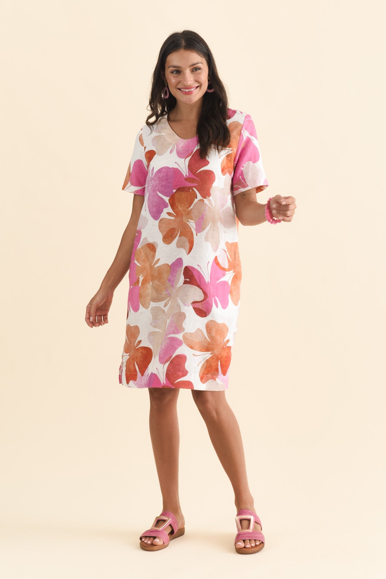 CHANNING PINK BUTTERFLY LINEN DRESS