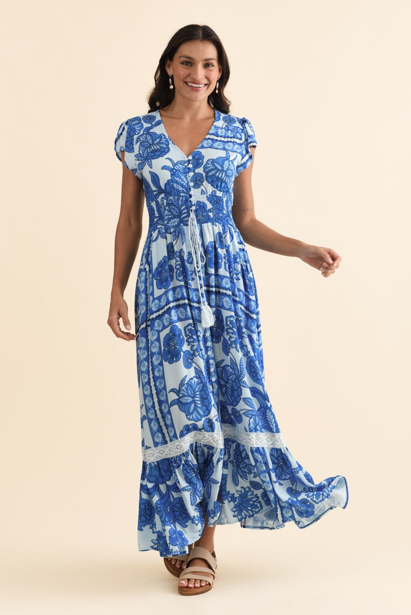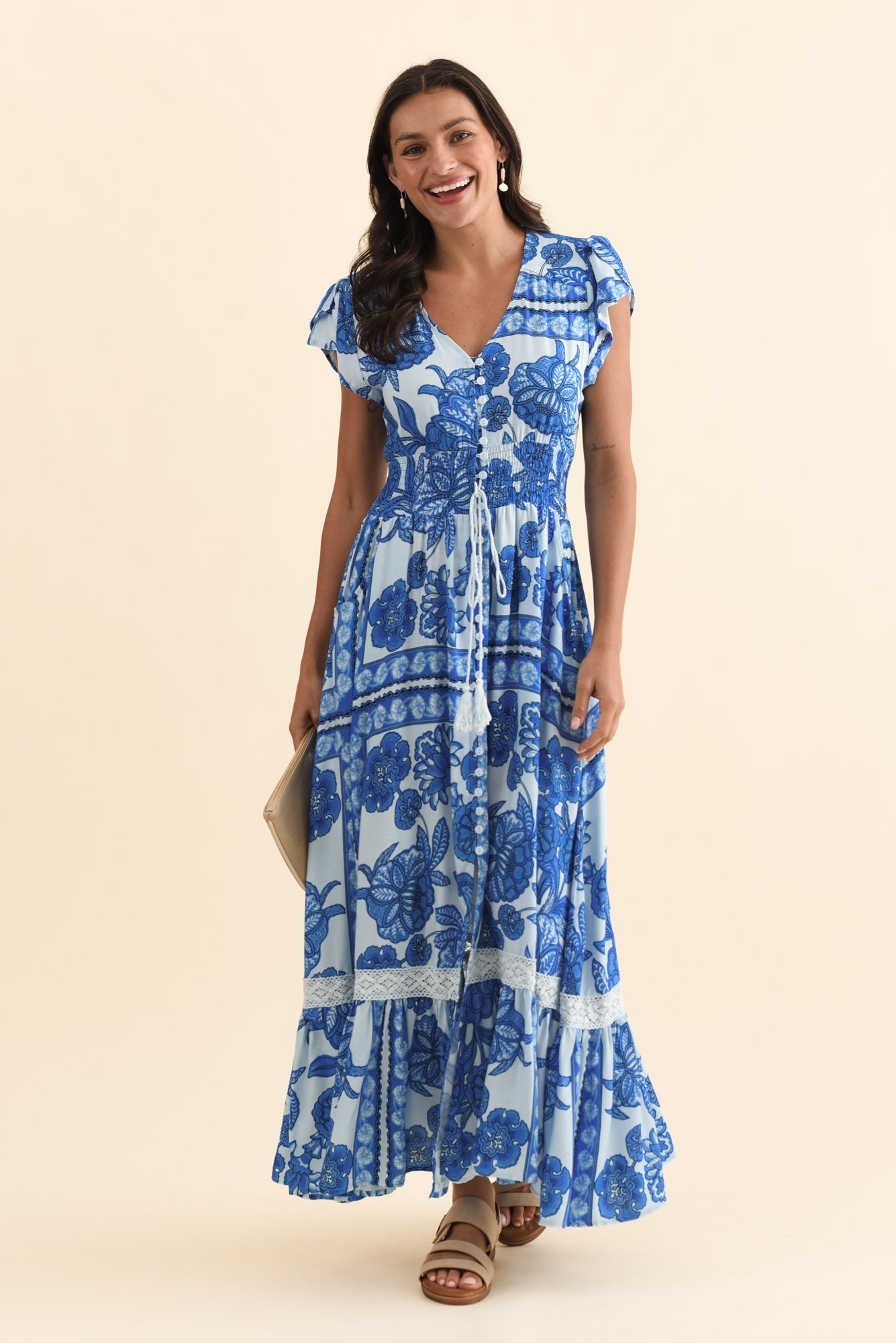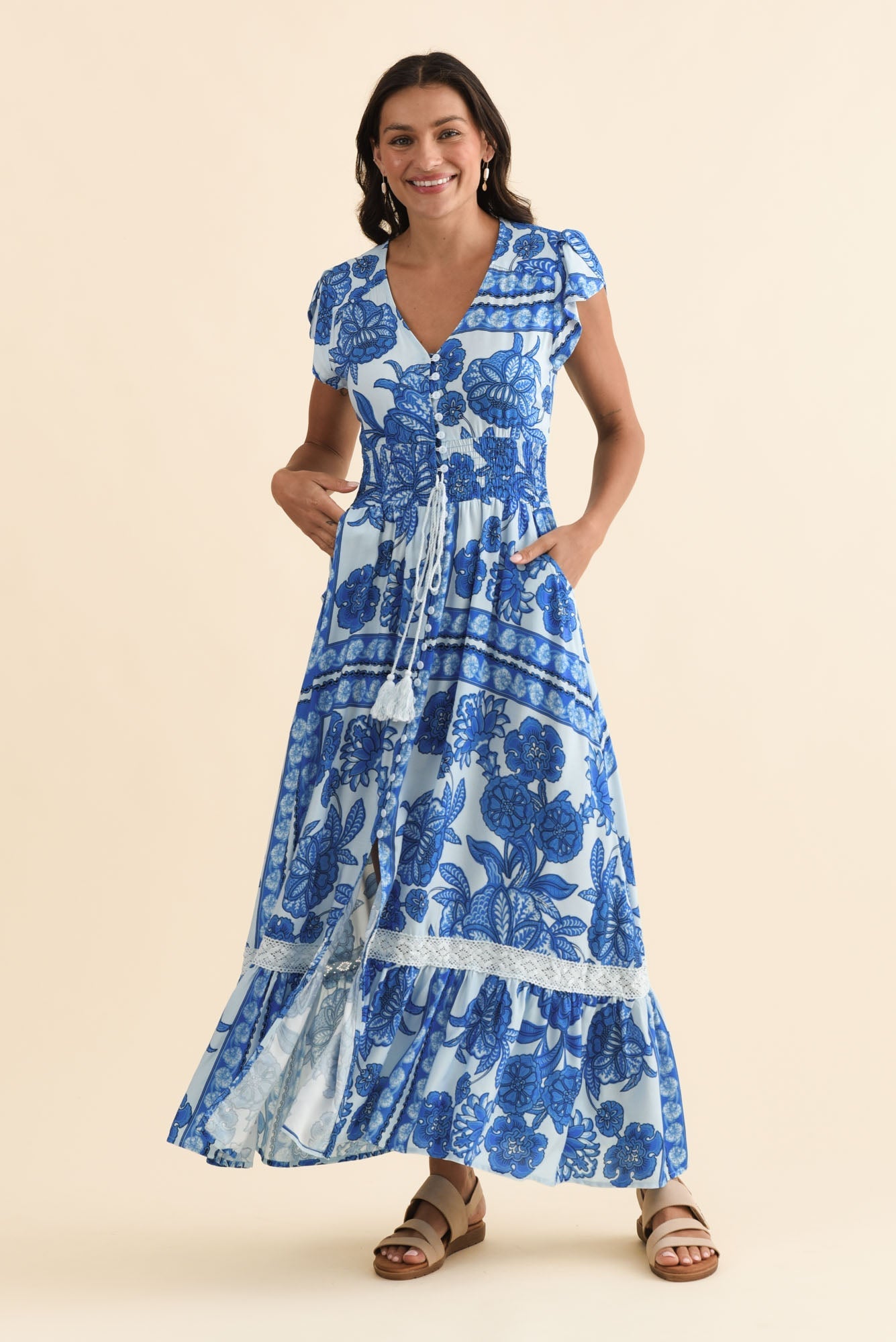CHAPPELLE BLUE BLOOM BUTTON DRESS