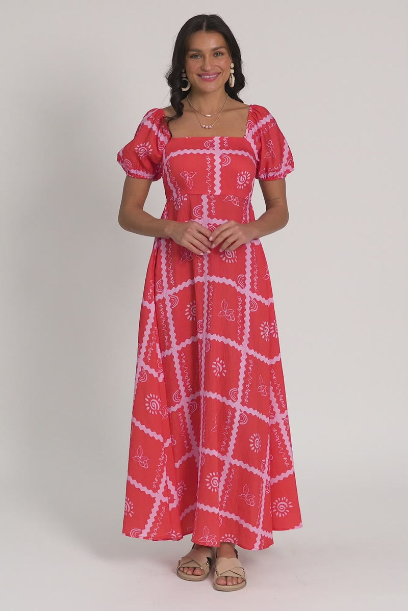 CHARLOTTE RED TILE MAXI DRESS