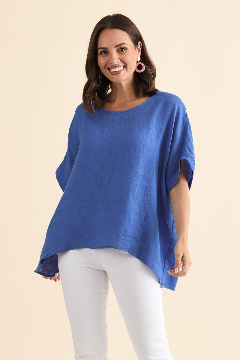 CHAYA COBALT LINEN TOP