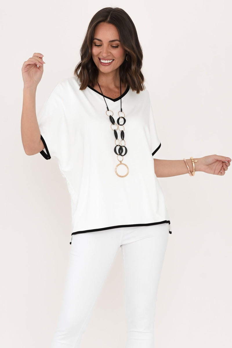 CLARA WHITE CONTRAST BLACK TRIM TEE