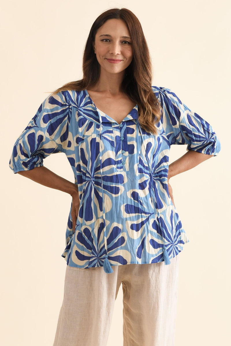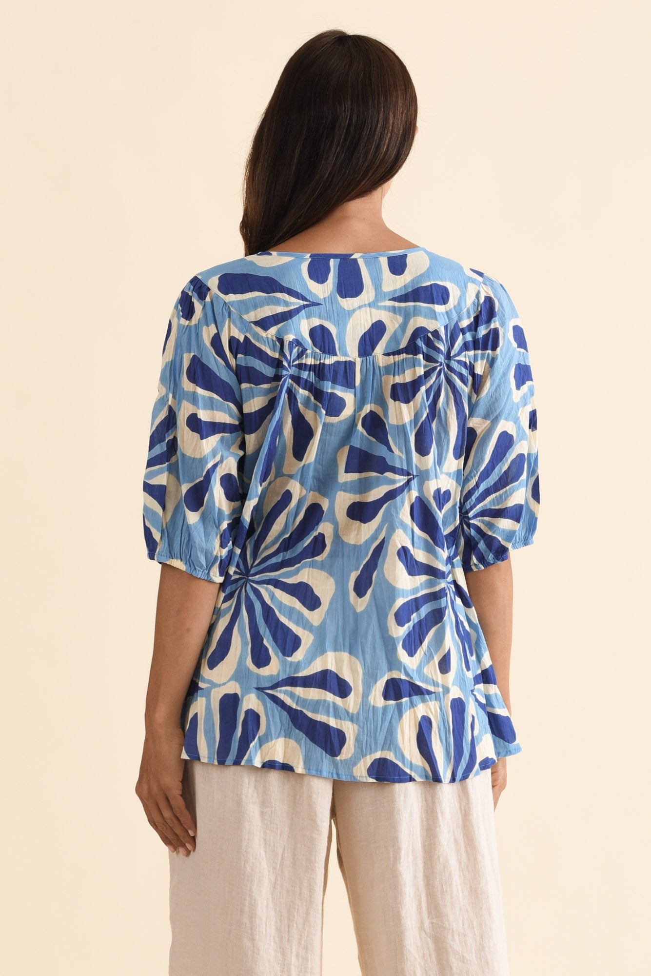 CLARIS BLUE DAISY CRINKLE COTTON TOP