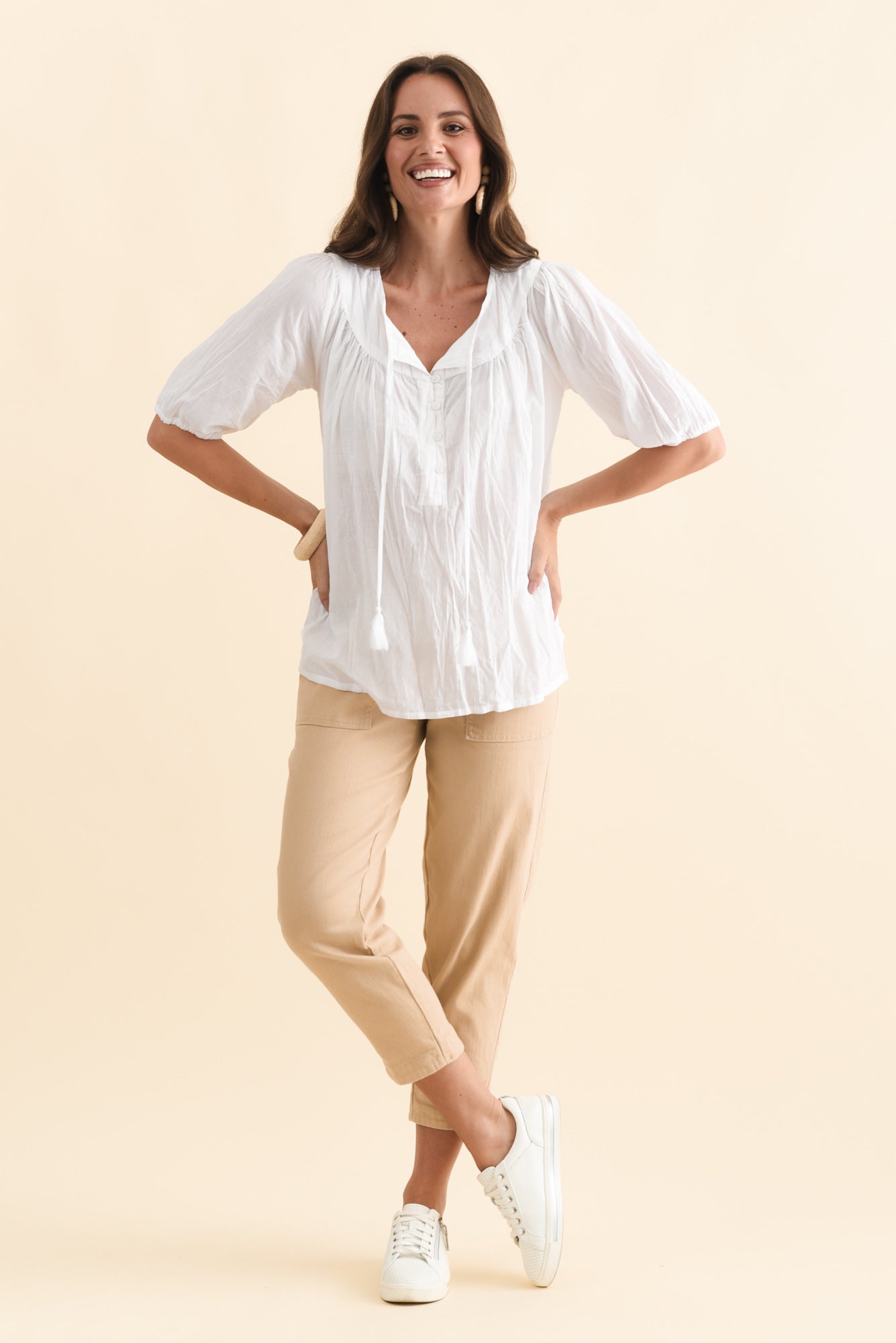 Claris White Crinkle Cotton Top