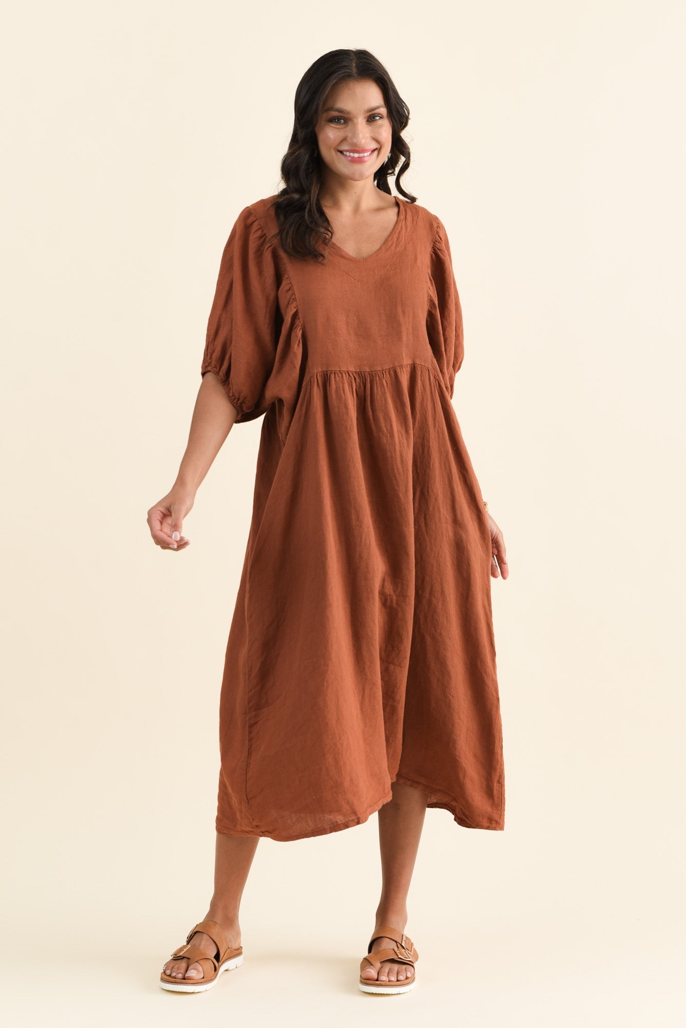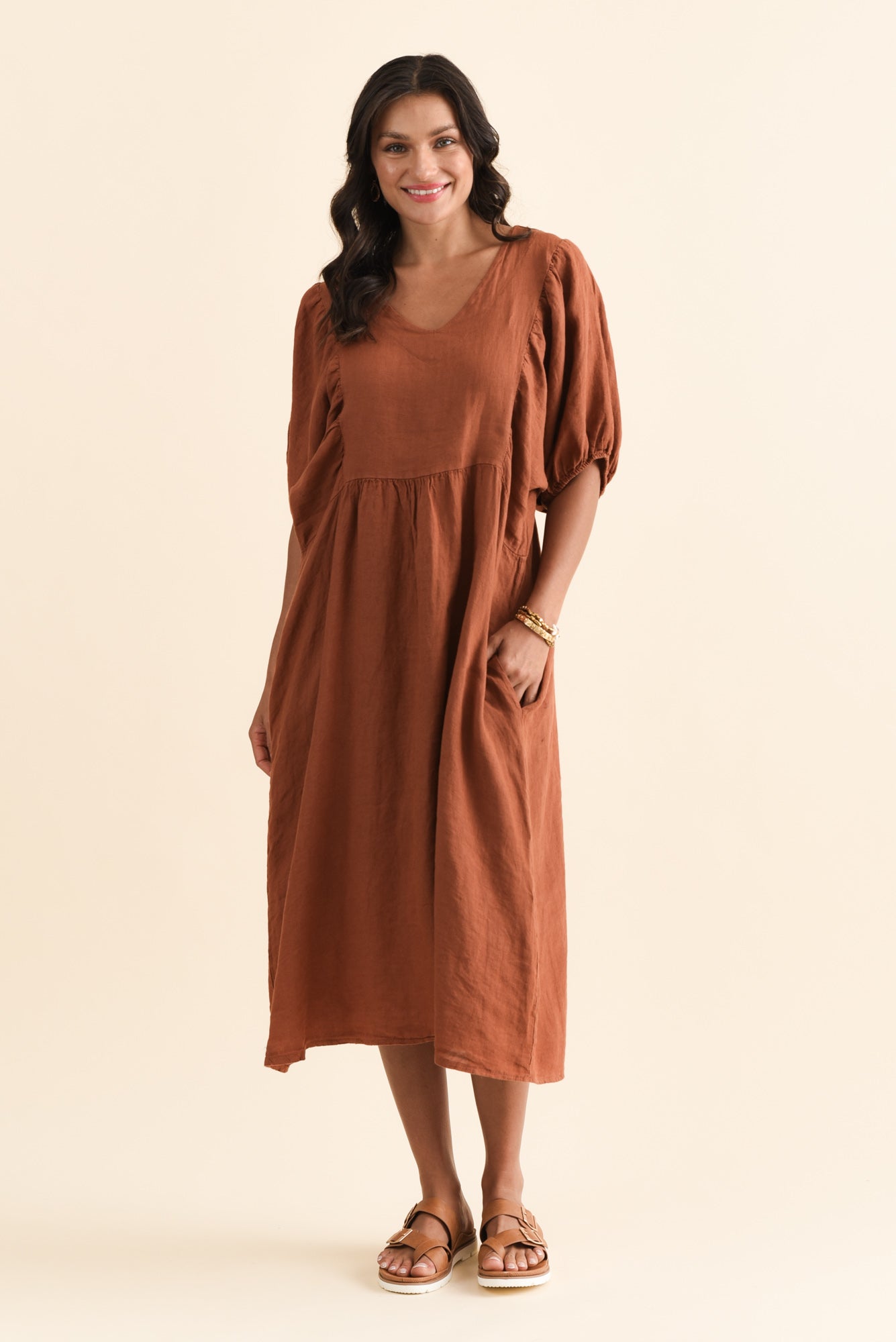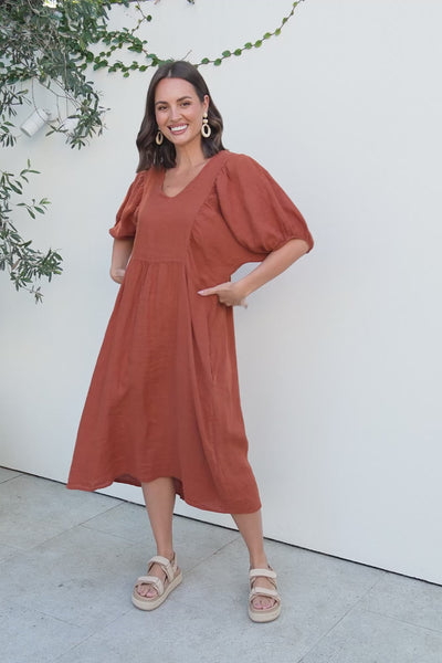 Claudine Rust Linen Pocket Dress