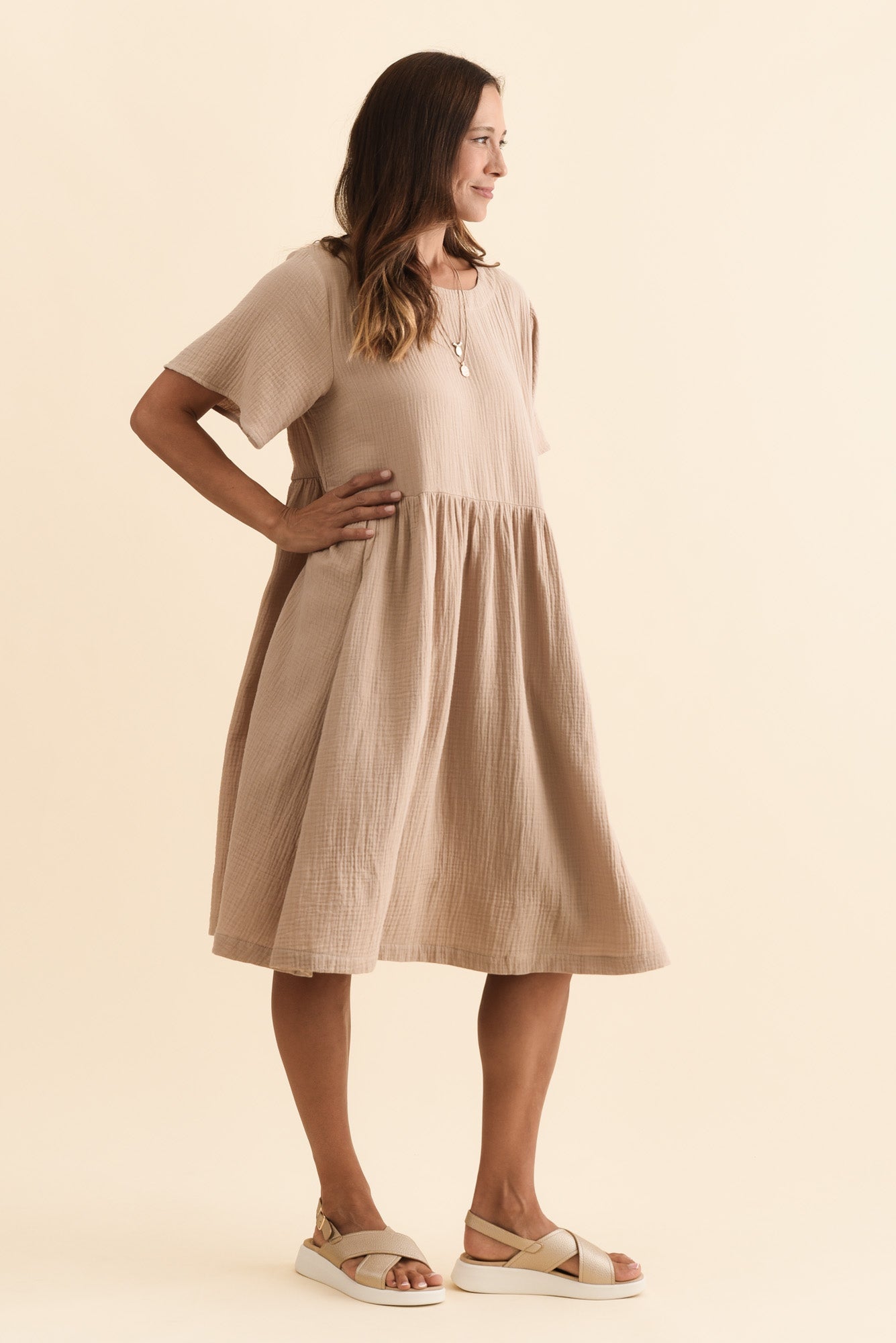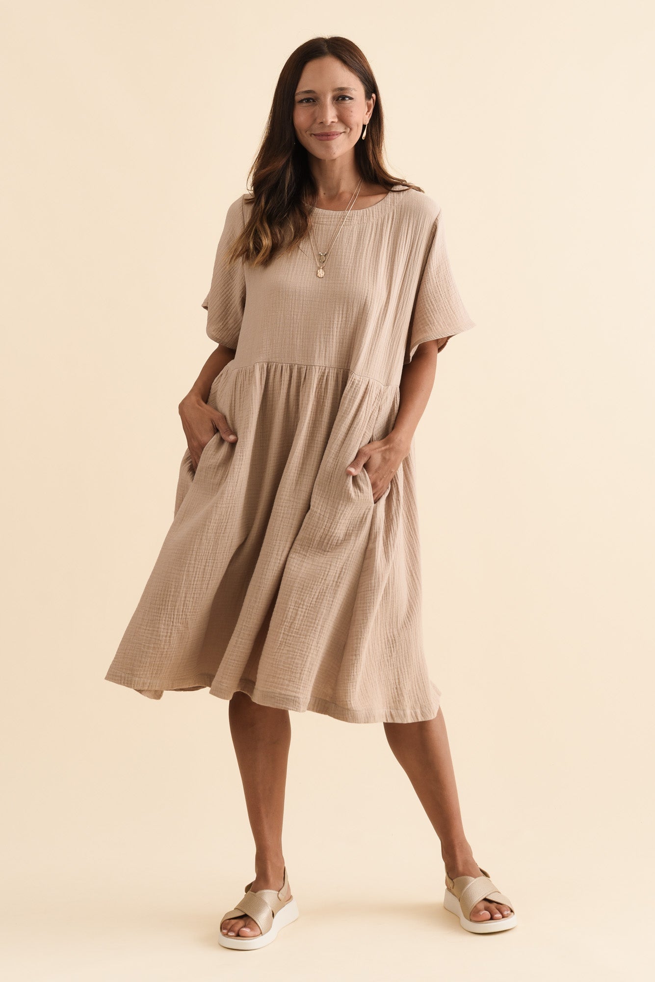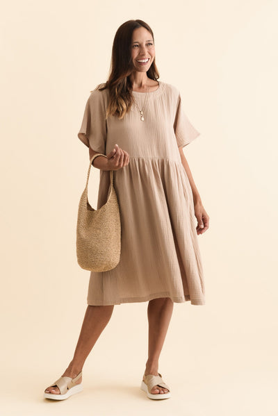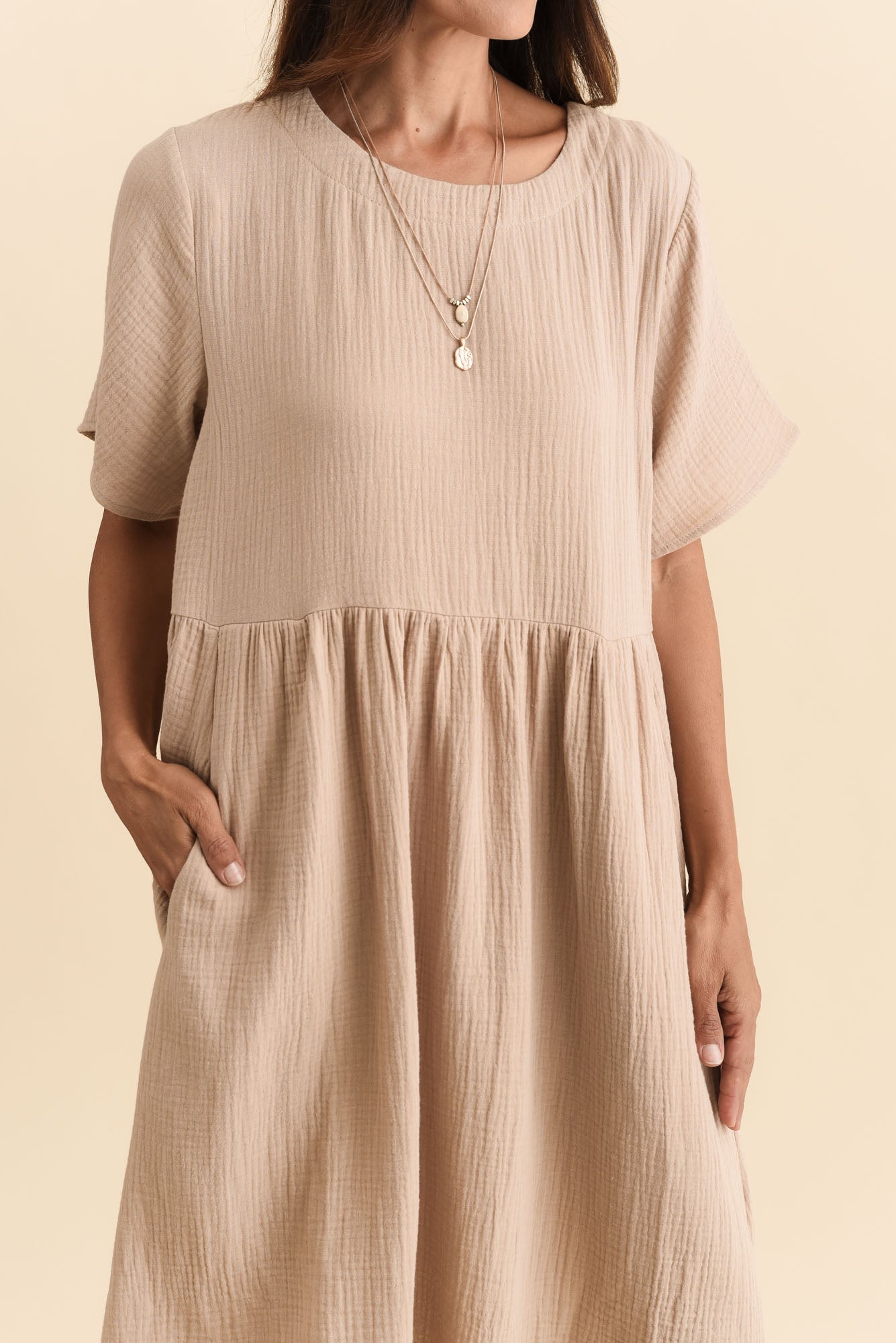 Cloud Gauze Beige Cotton Pocket Dress