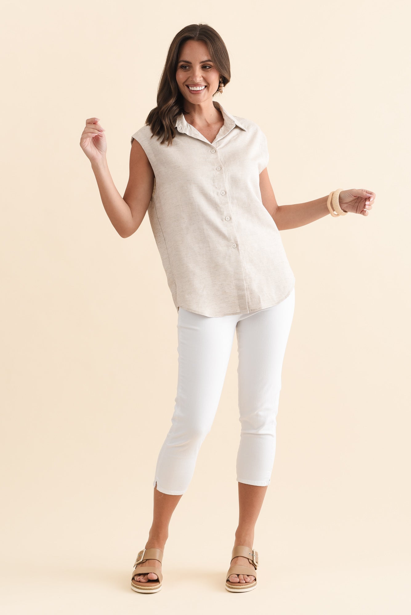 Corbin Natural Linen Blend Button Top