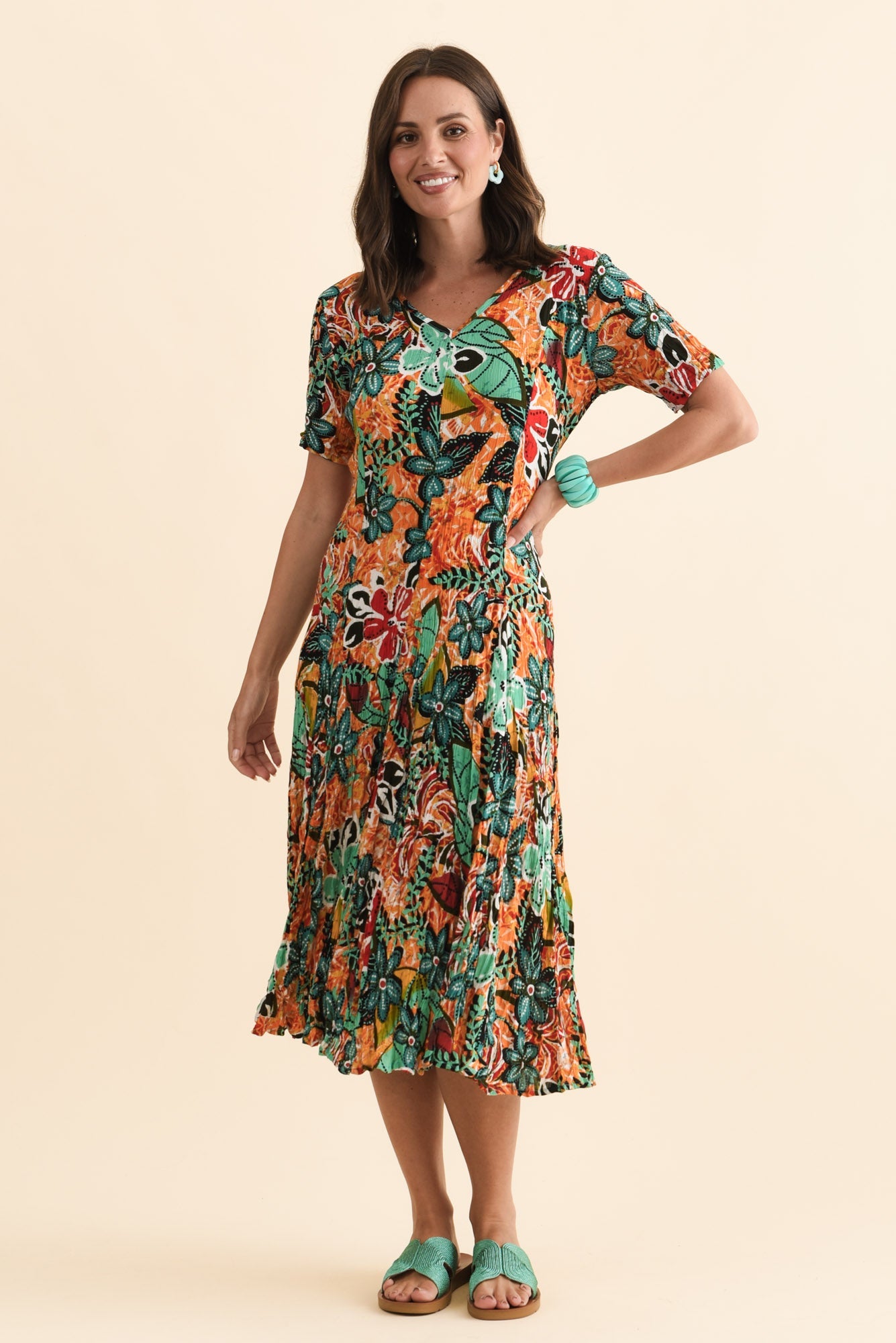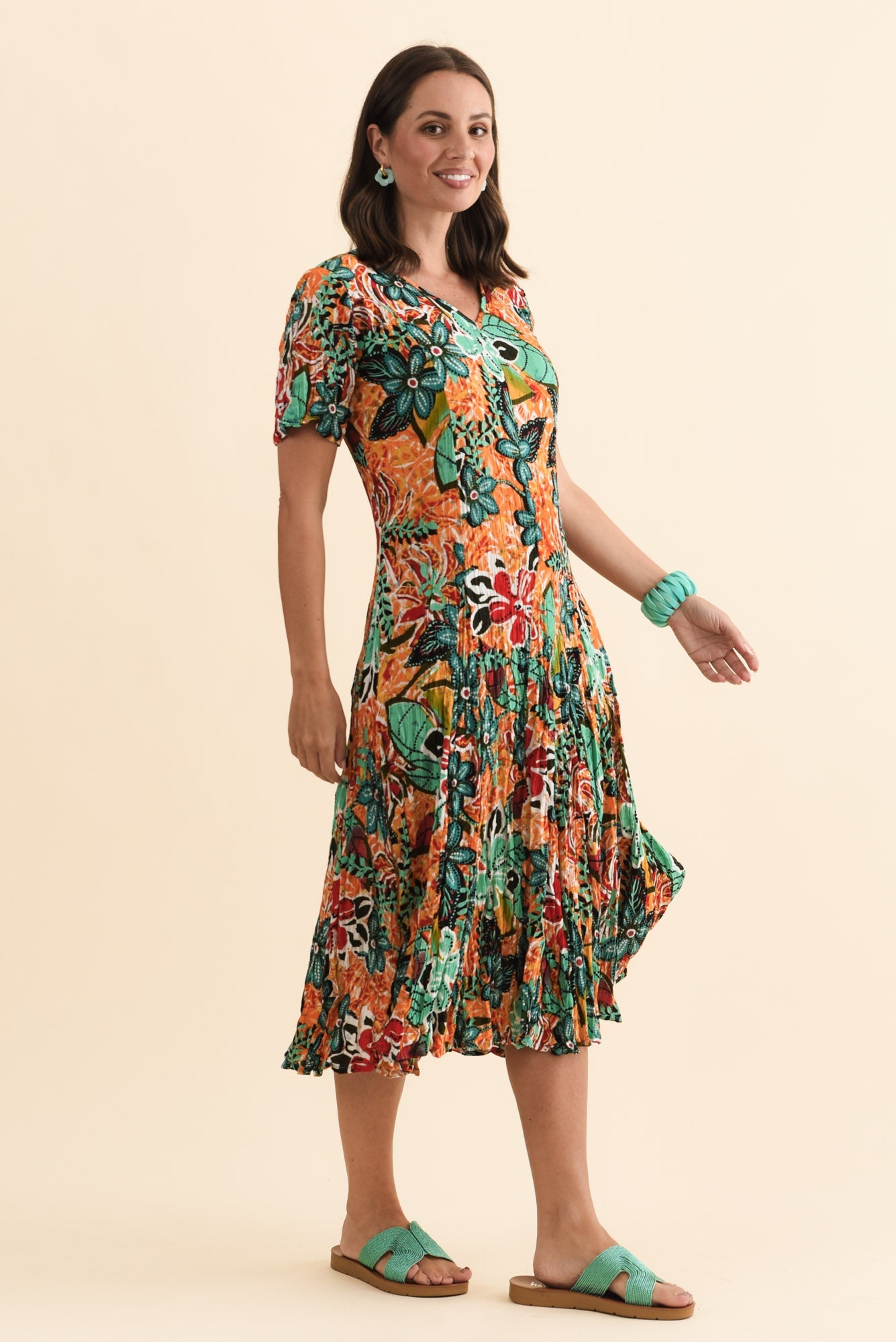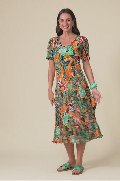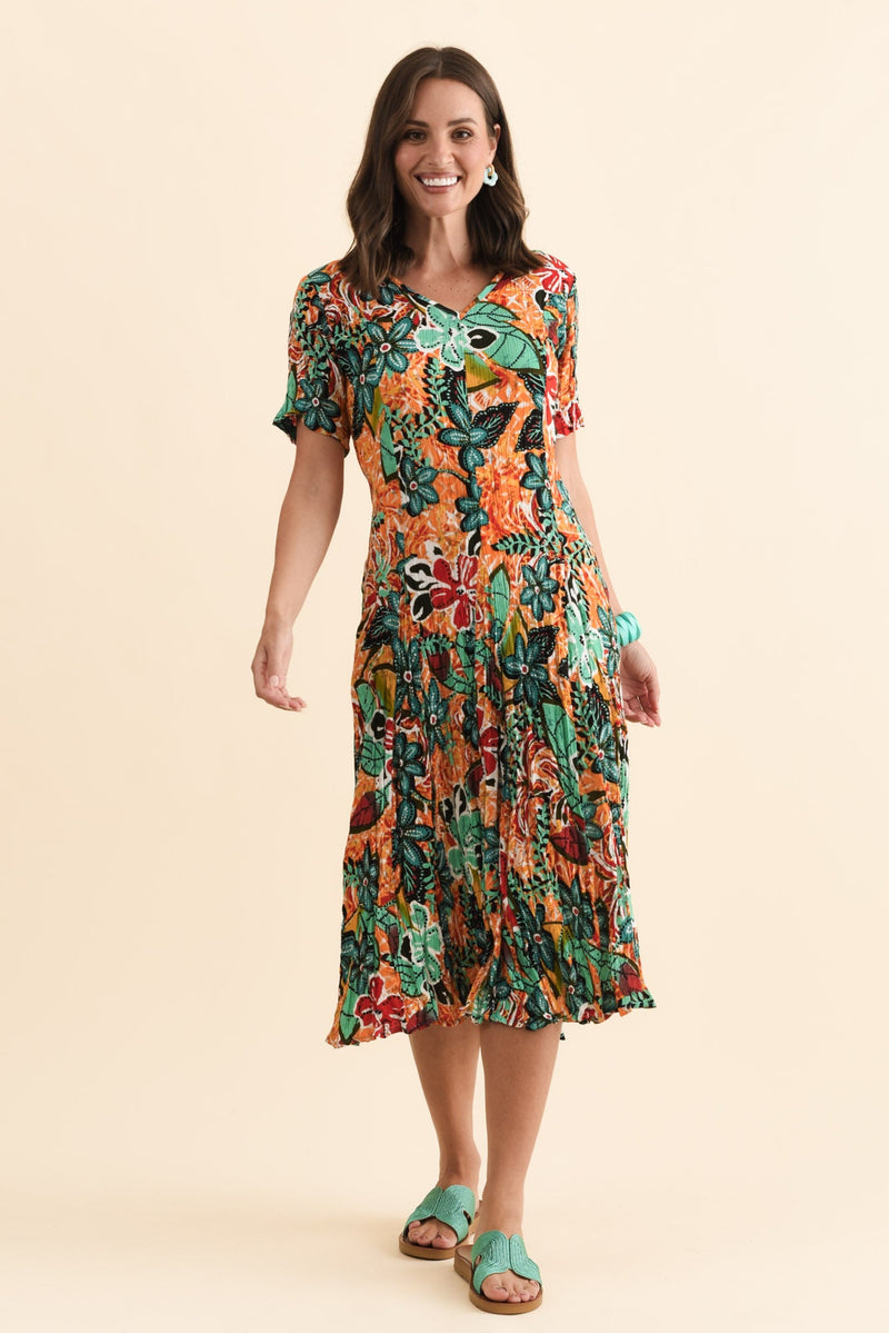 Danika Orange Floral Midi Dress