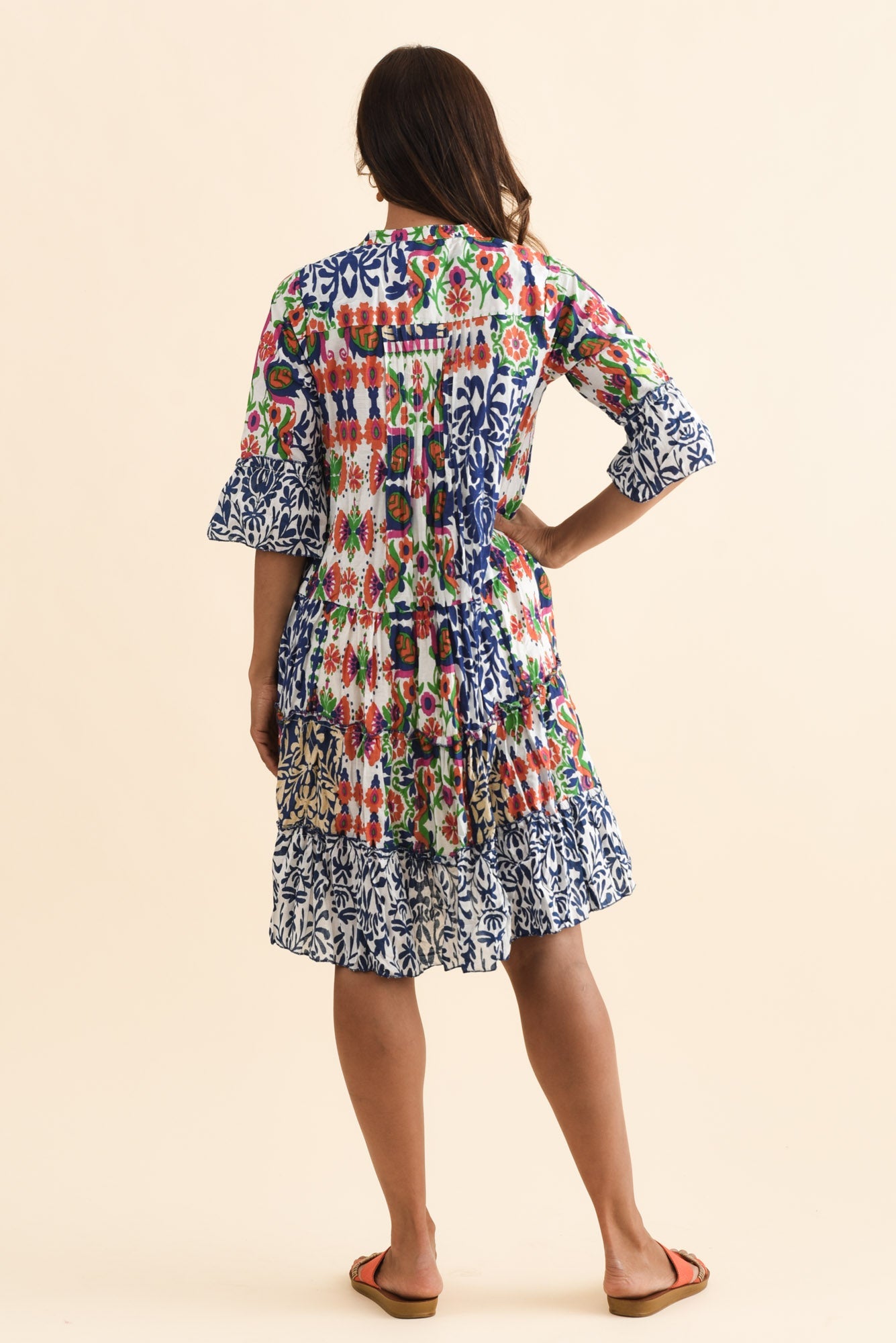 DANSON BLUE ABSTRACT FRILL SLEEVE DRESS