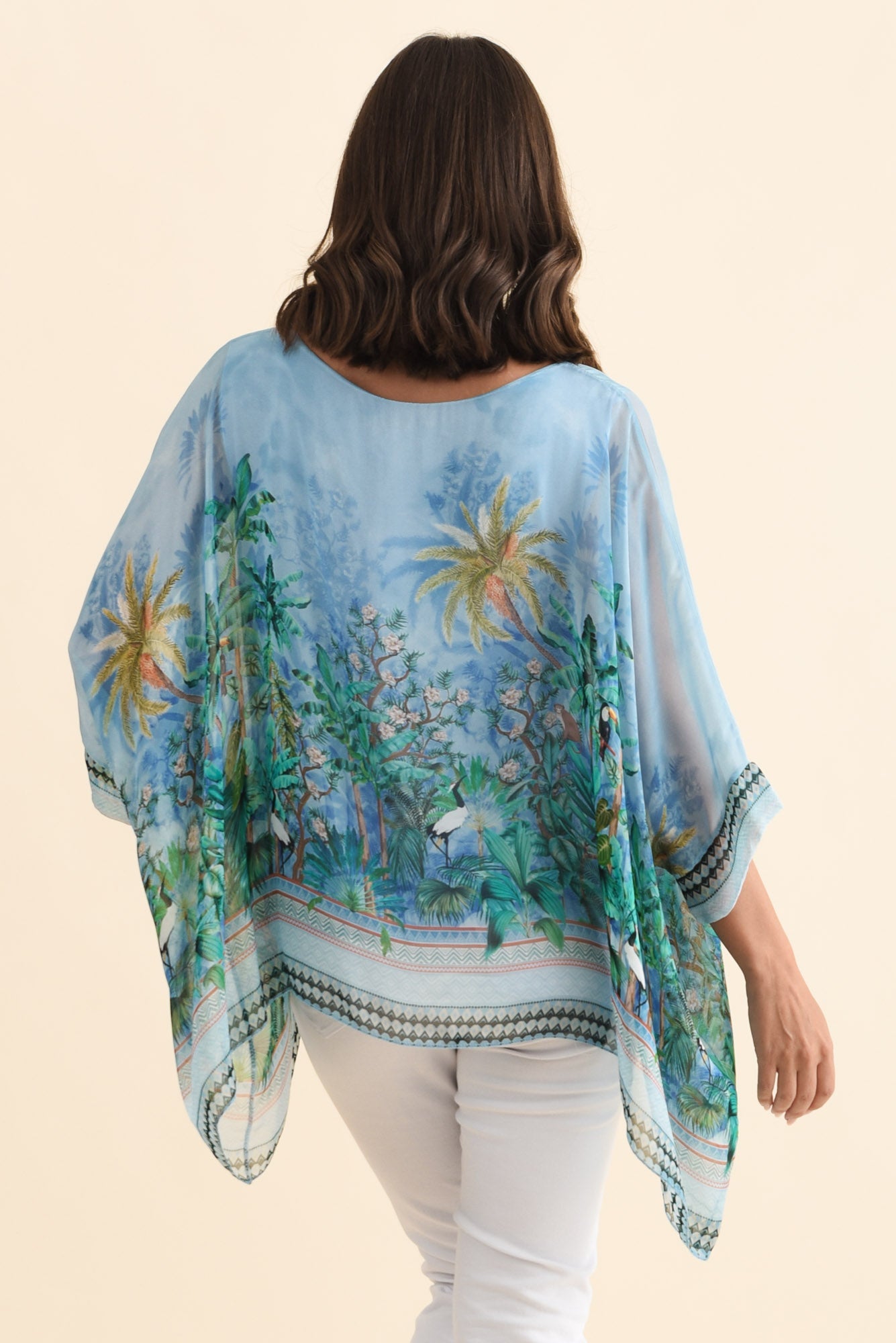 DAWN BLUE TROPICAL SILK OVERLAY TOP