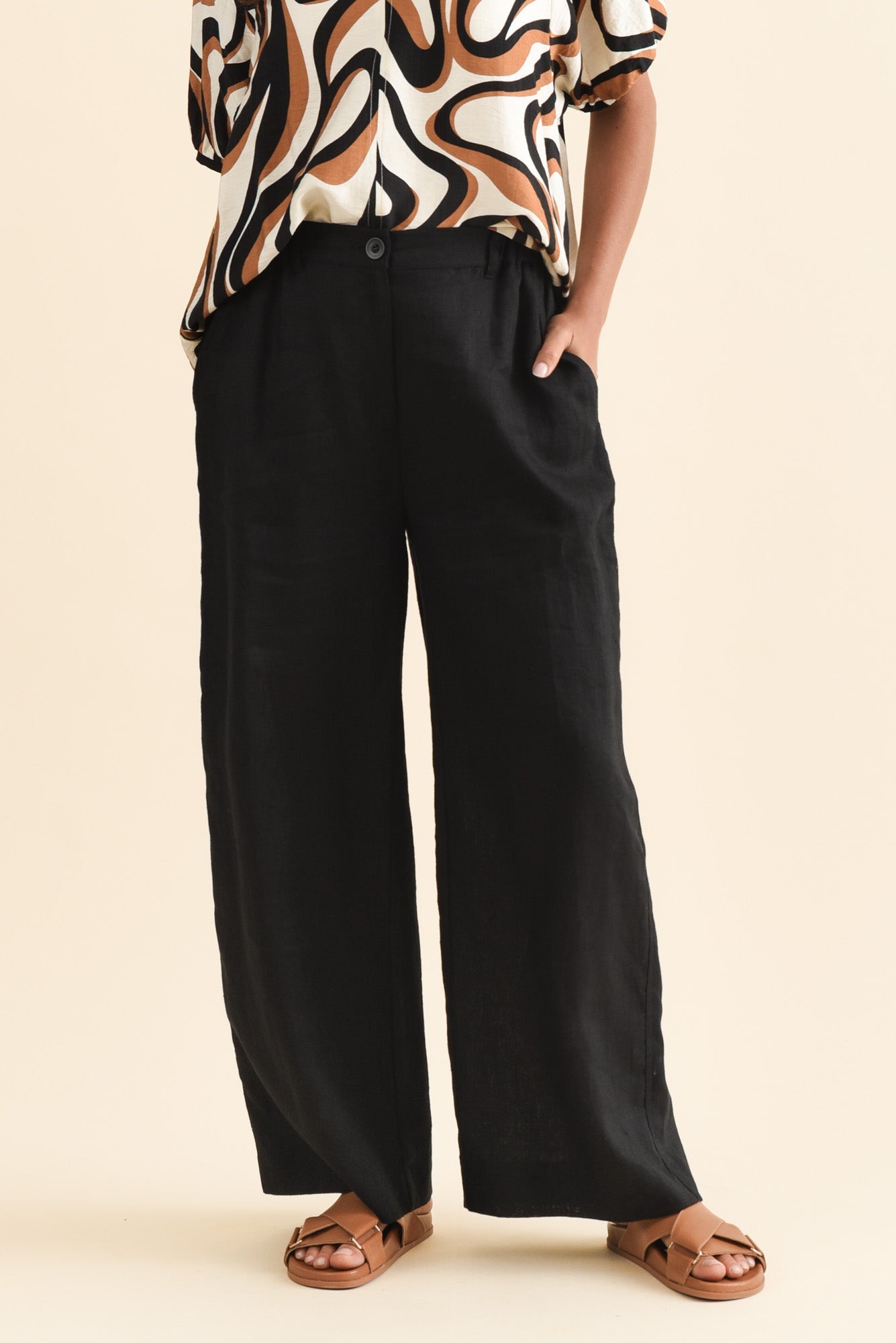 DELSEY BLACK LINEN WIDE LEG PANTS