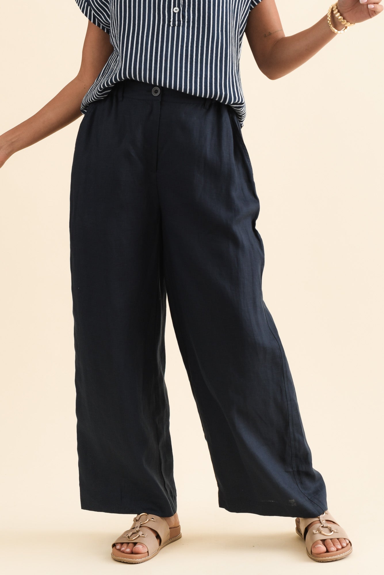 DELSEY NAVY LINEN WIDE LEG PANTS