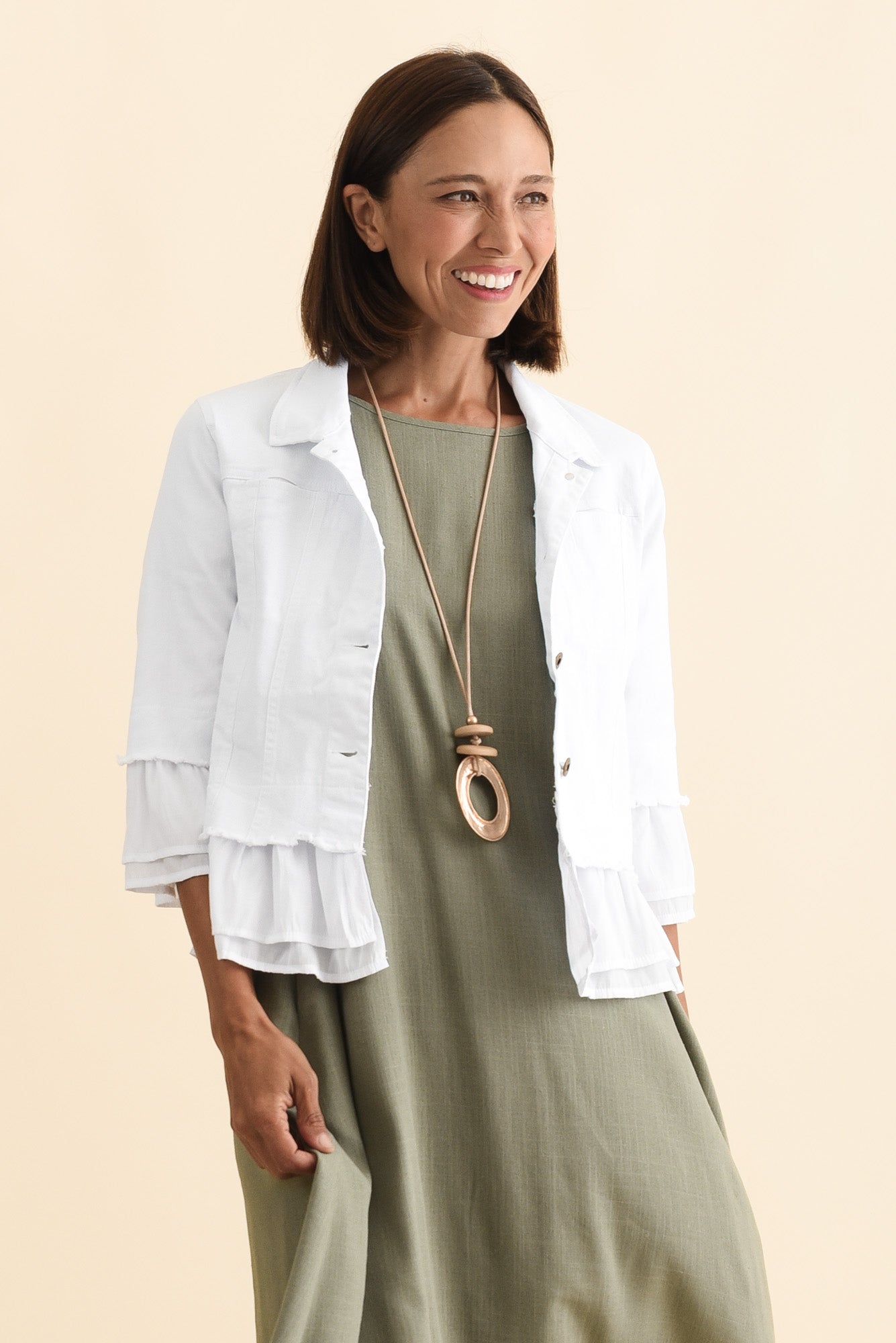 Dolores White Cotton Frill Jacket