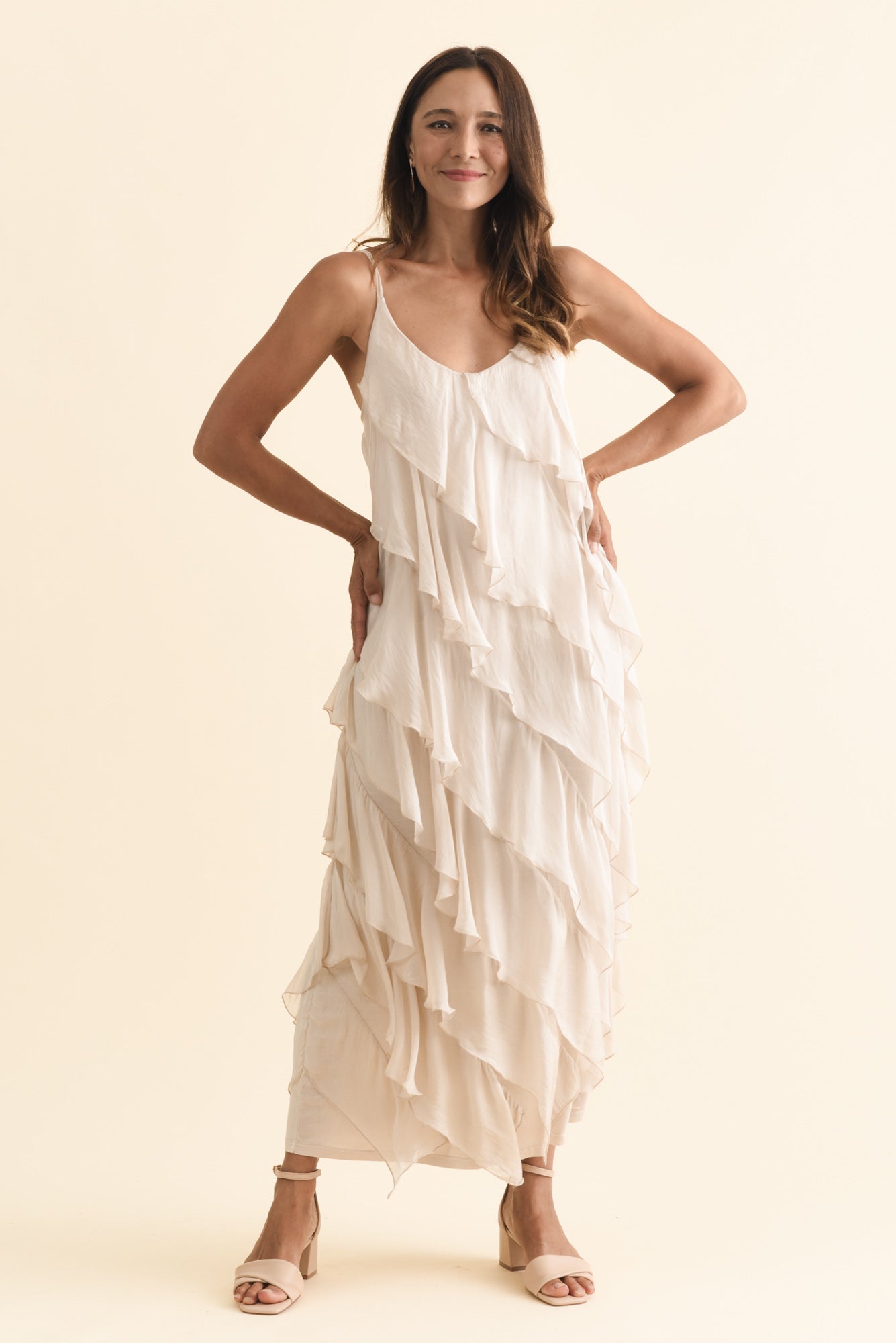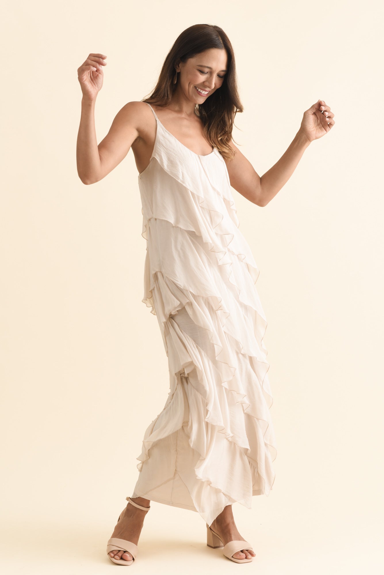 DOMINICA CHAMPAGNE SILK RUFFLE DRESS
