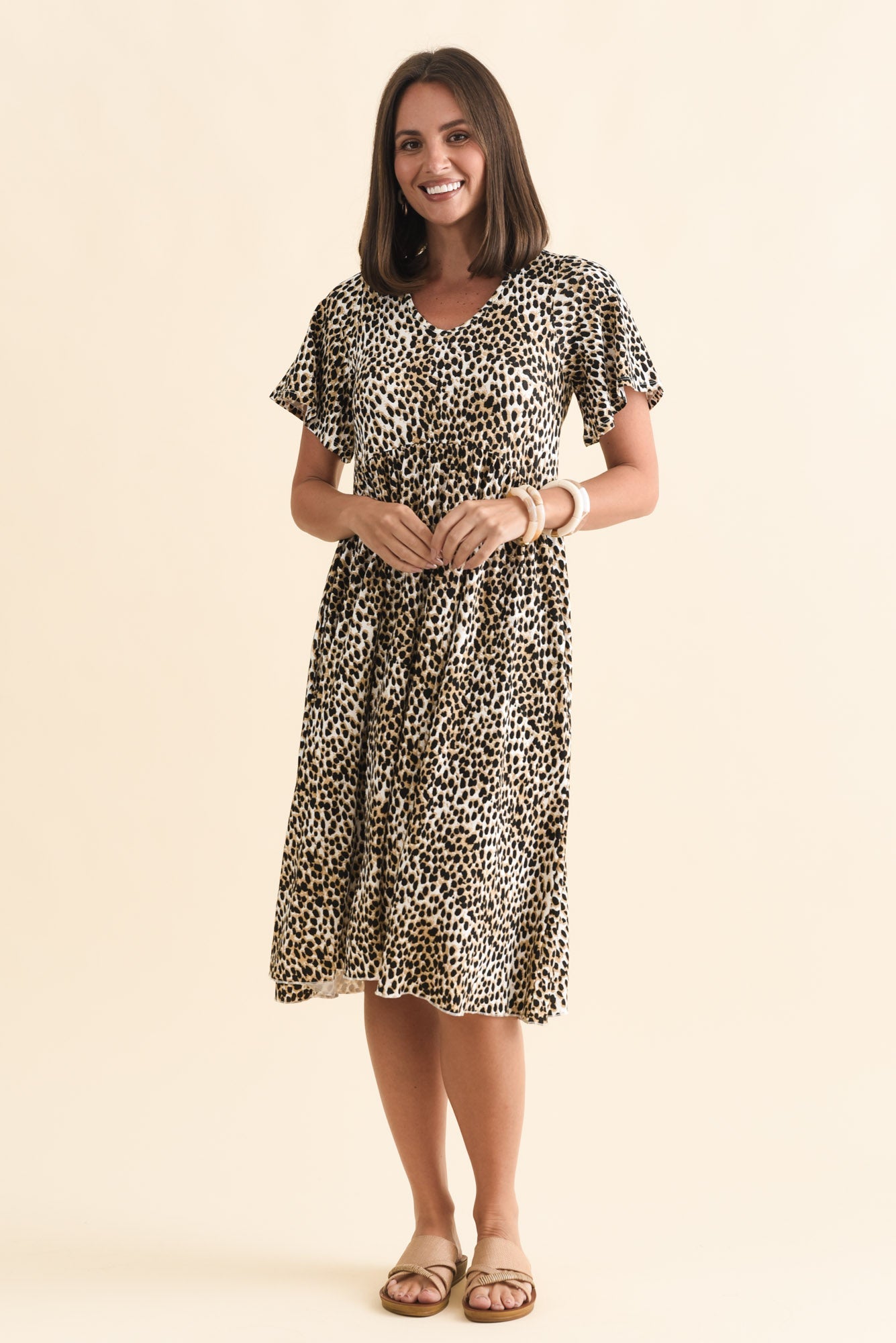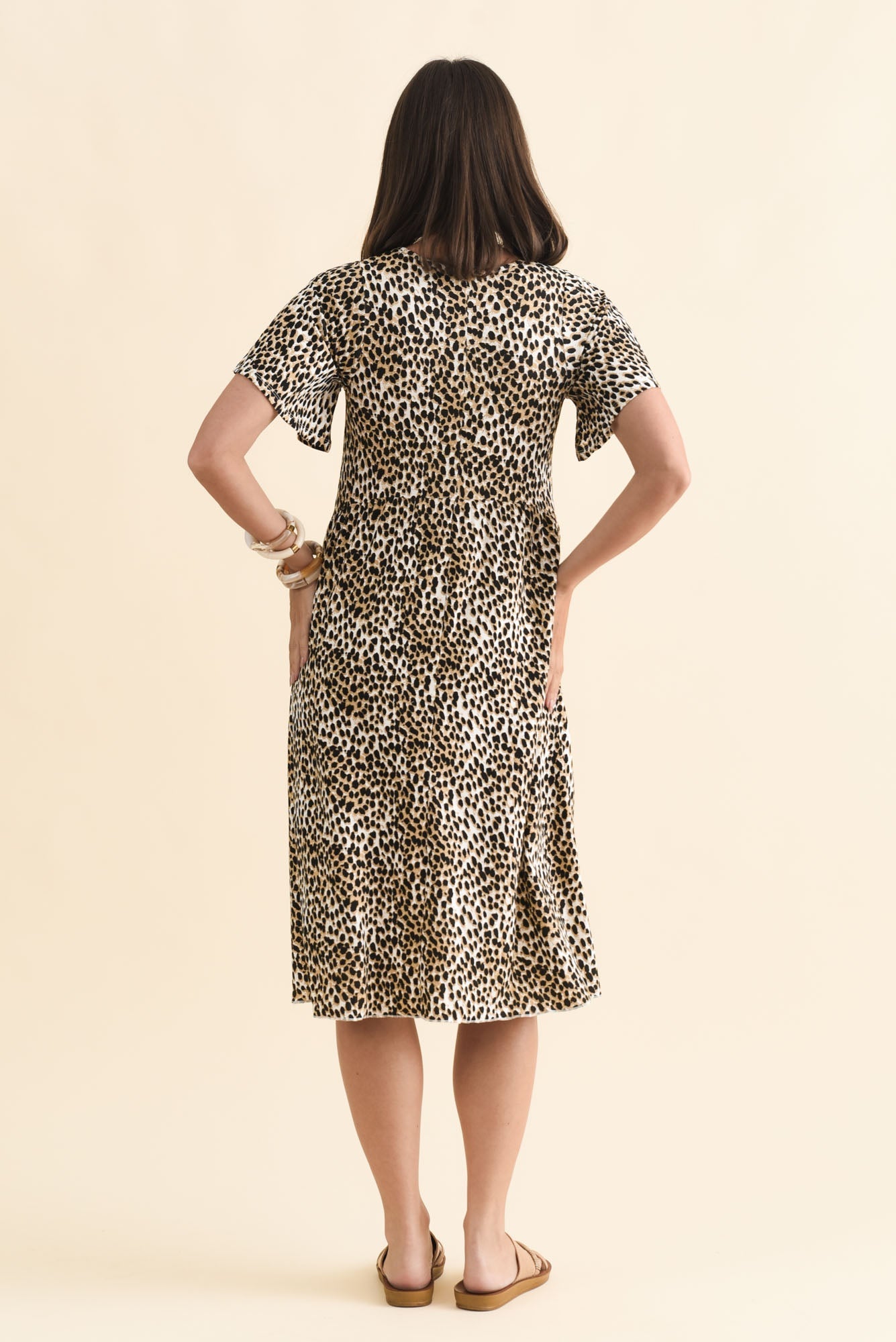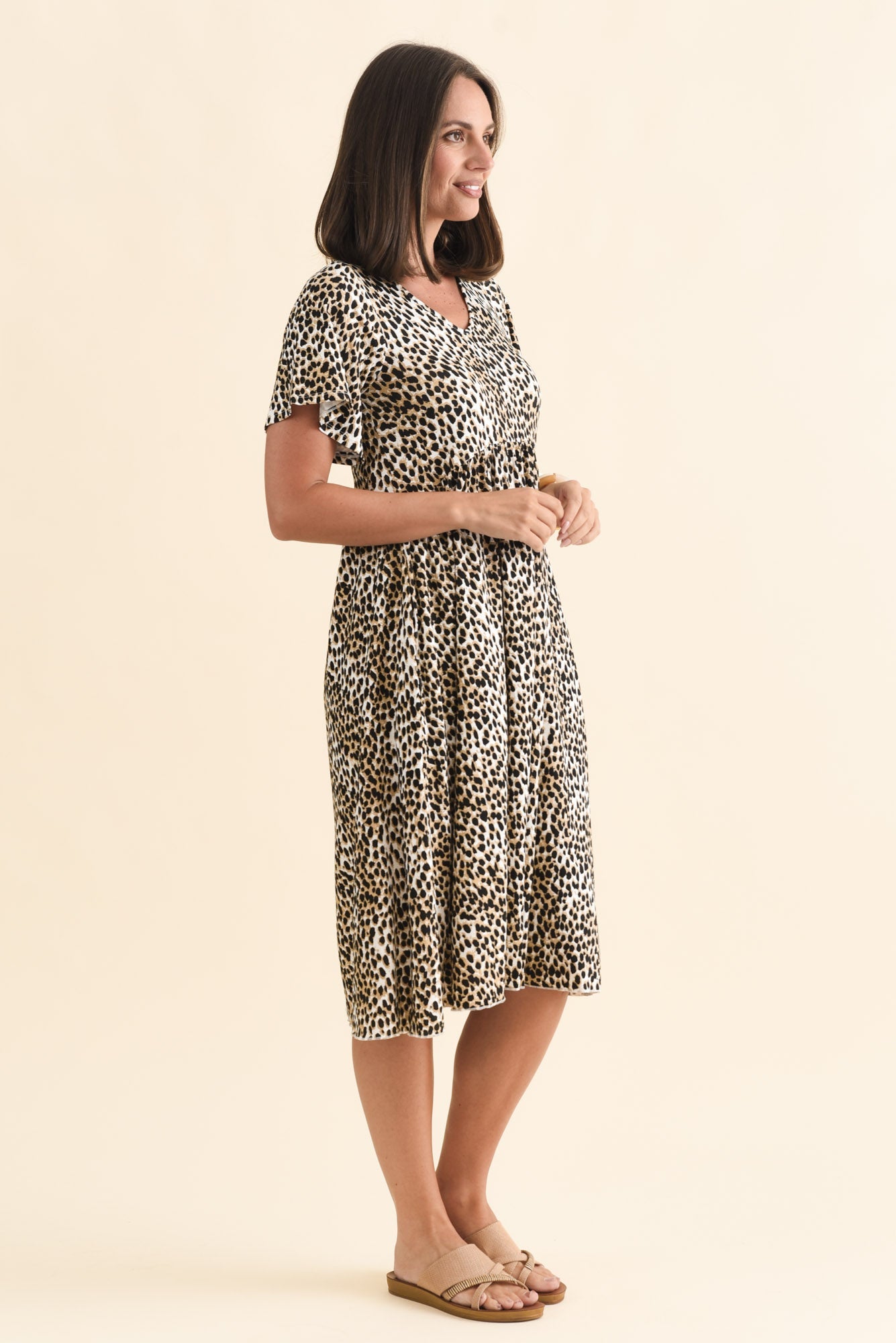 Donna Brown Cheetah Gathered Dress