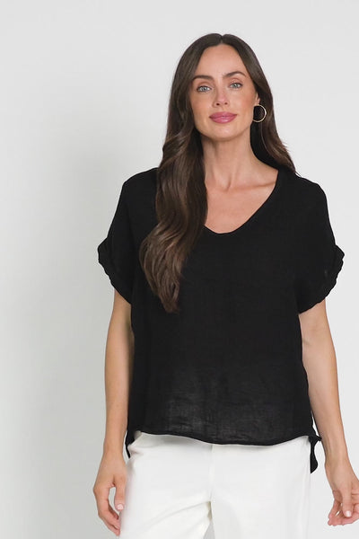 Dorian Black Linen Cotton Top