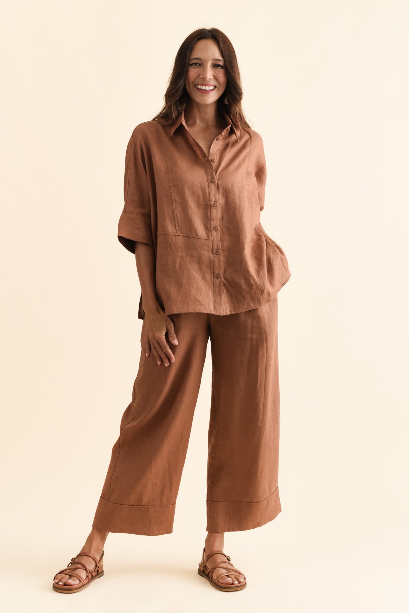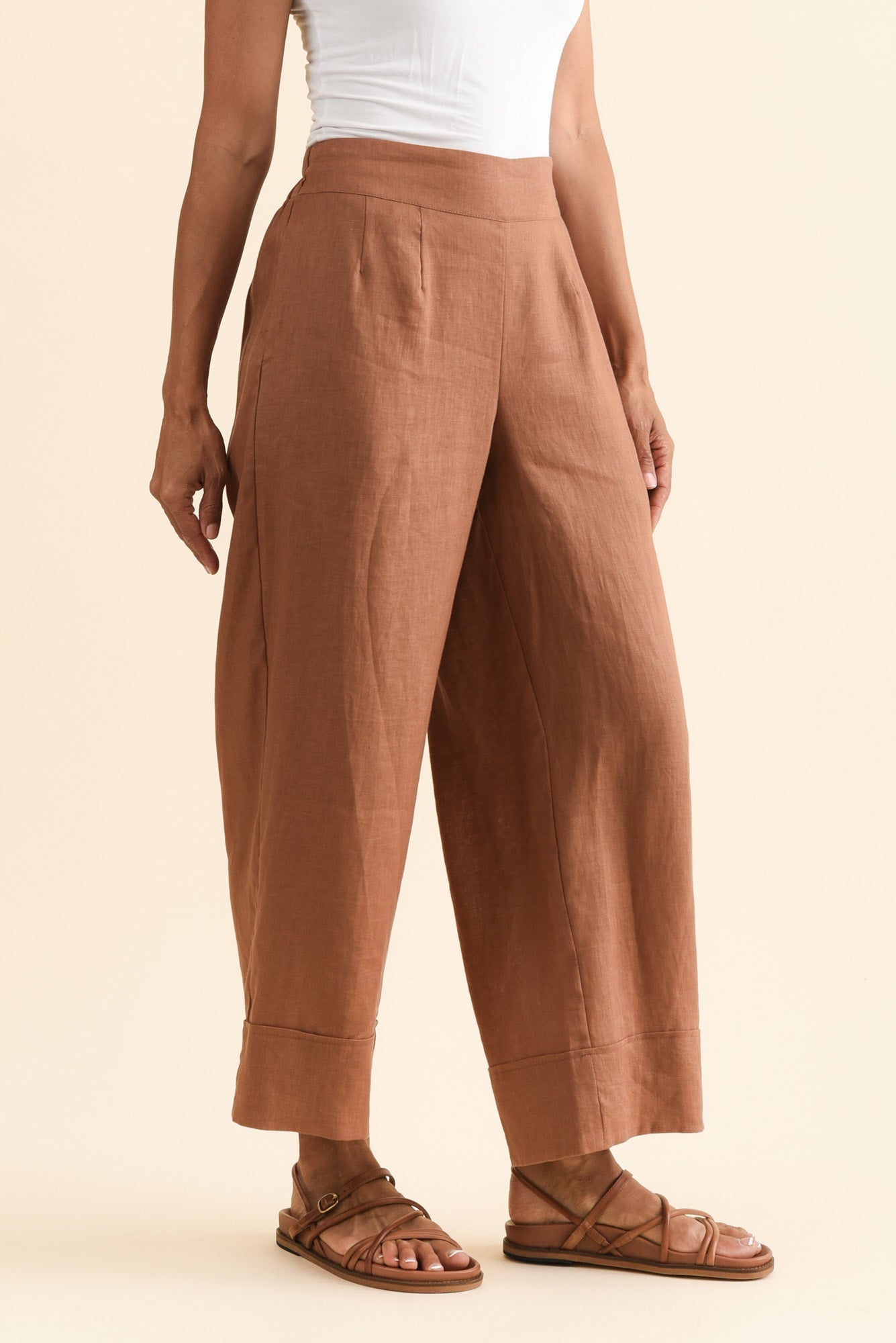 ELGON MOCHA LINEN WIDE LEG PANTS