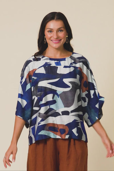 EMILEE BLUE ABSTRACT DRAPE TOP