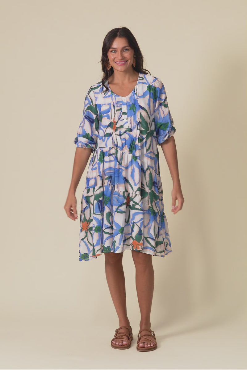 Esta Green Flower Sleeved Dress